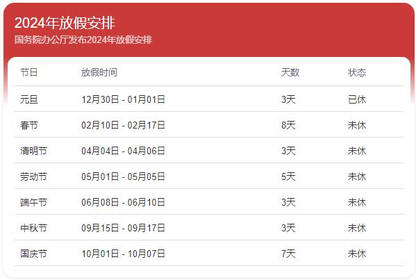 大家有没有算过2024年我们一共有多少天假期?小编掐指一(算)查,共计32天,其中3天已经休完了,于是乎,2024年假期余额还剩29天~
