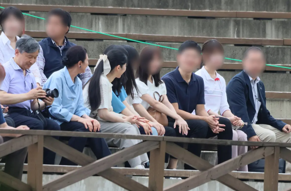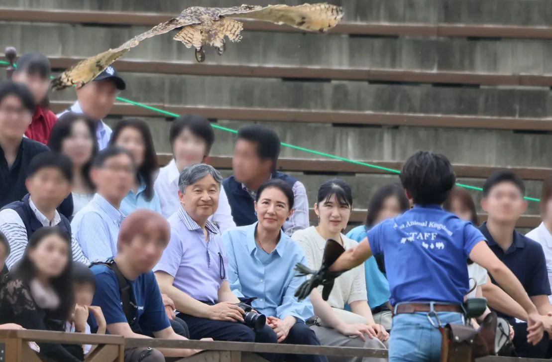 “当鸟儿掠过观众头顶时,爱子公主和女性朋友及那位青年一边观看表演一边亲密谈笑。雅子皇后也不时加入一起交流,看起来就像是好友聚会一般......”。
