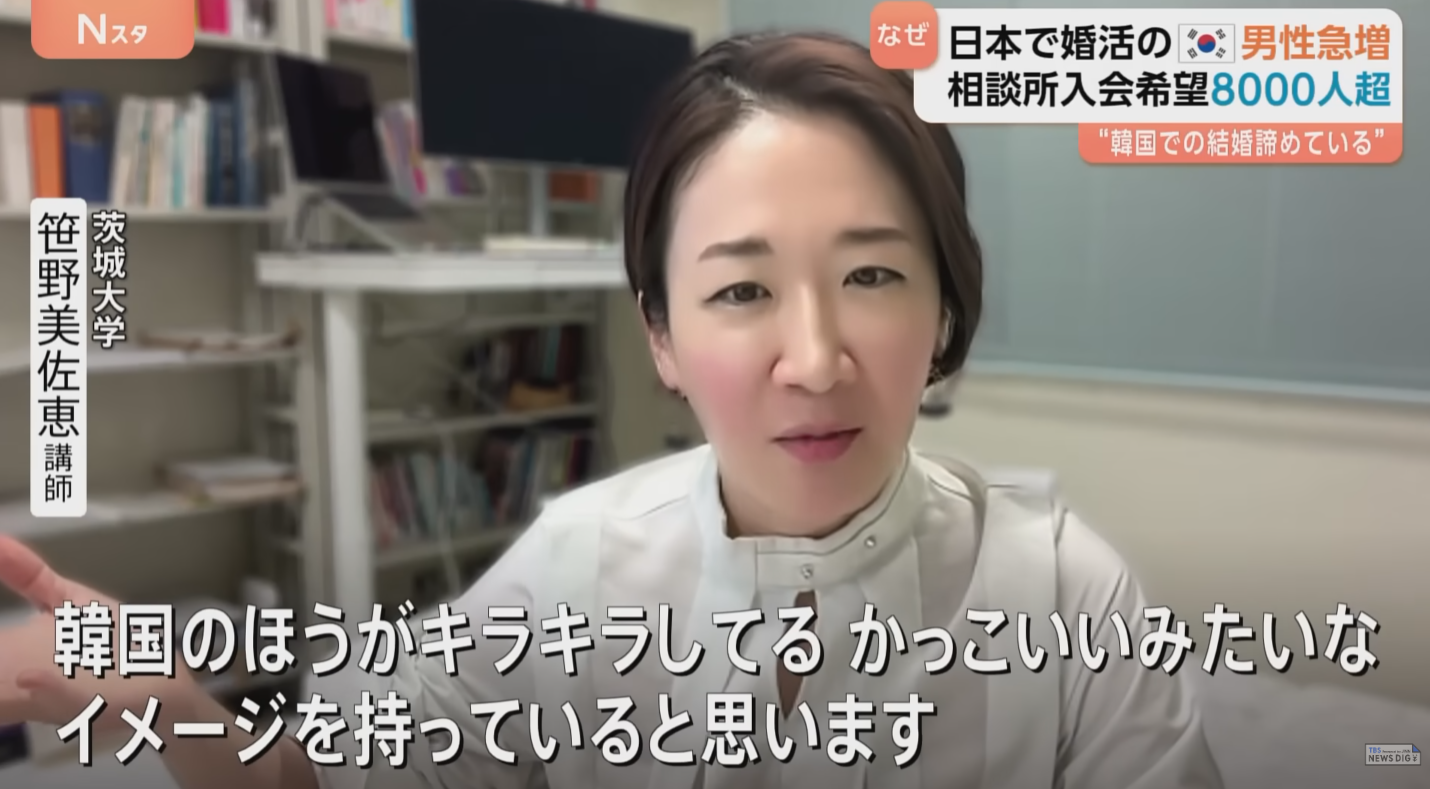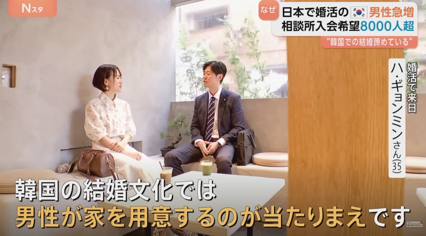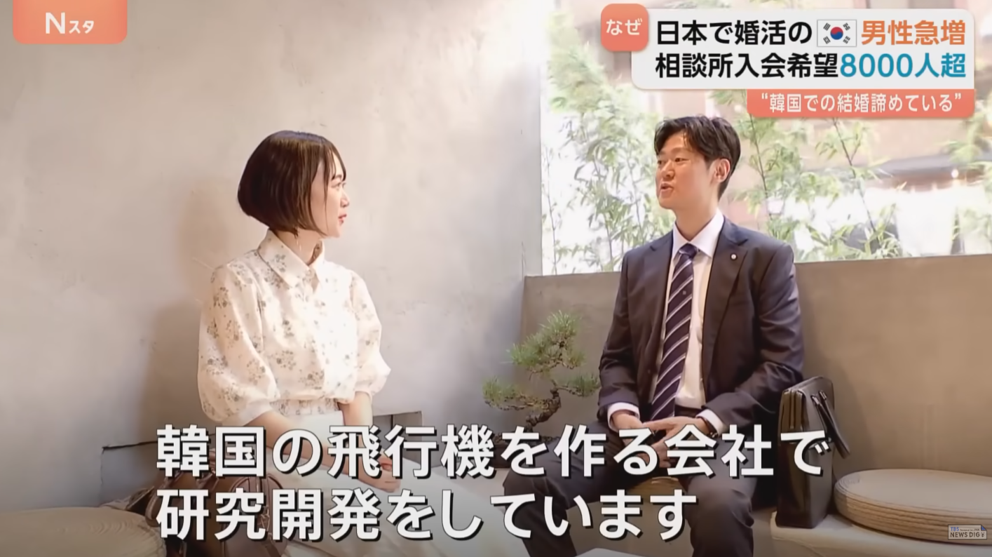 婚介所DAYRIE 洪大义代表:“韩国男性已经对(在韩国国内)结婚死心了。但日本的女性普遍都有要一起努力的态度”。