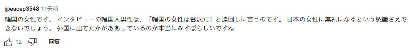 我是韩国女性,这个受访韩男其实是在隐晦表达“韩女拜金”的意思。他恐怕根本没意识到自己这些说法完全就是失礼的行为。看到本国人在外国是这般模样,实在让人难堪。