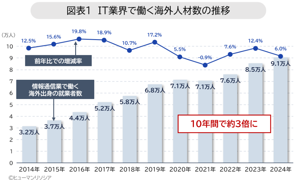 今後、日本でIT業界を育成するにあたっては、日本国内の人材育成を進める以外にも、外国人高度人材の活用が不可欠になってきます。実際に、人材面で需給が逼迫して、中国人IT人材が増えてきている現状があります。中国出身者をはじめとする外国人高度人材の受け入れは、IT企業の競争力強化にも直結します。