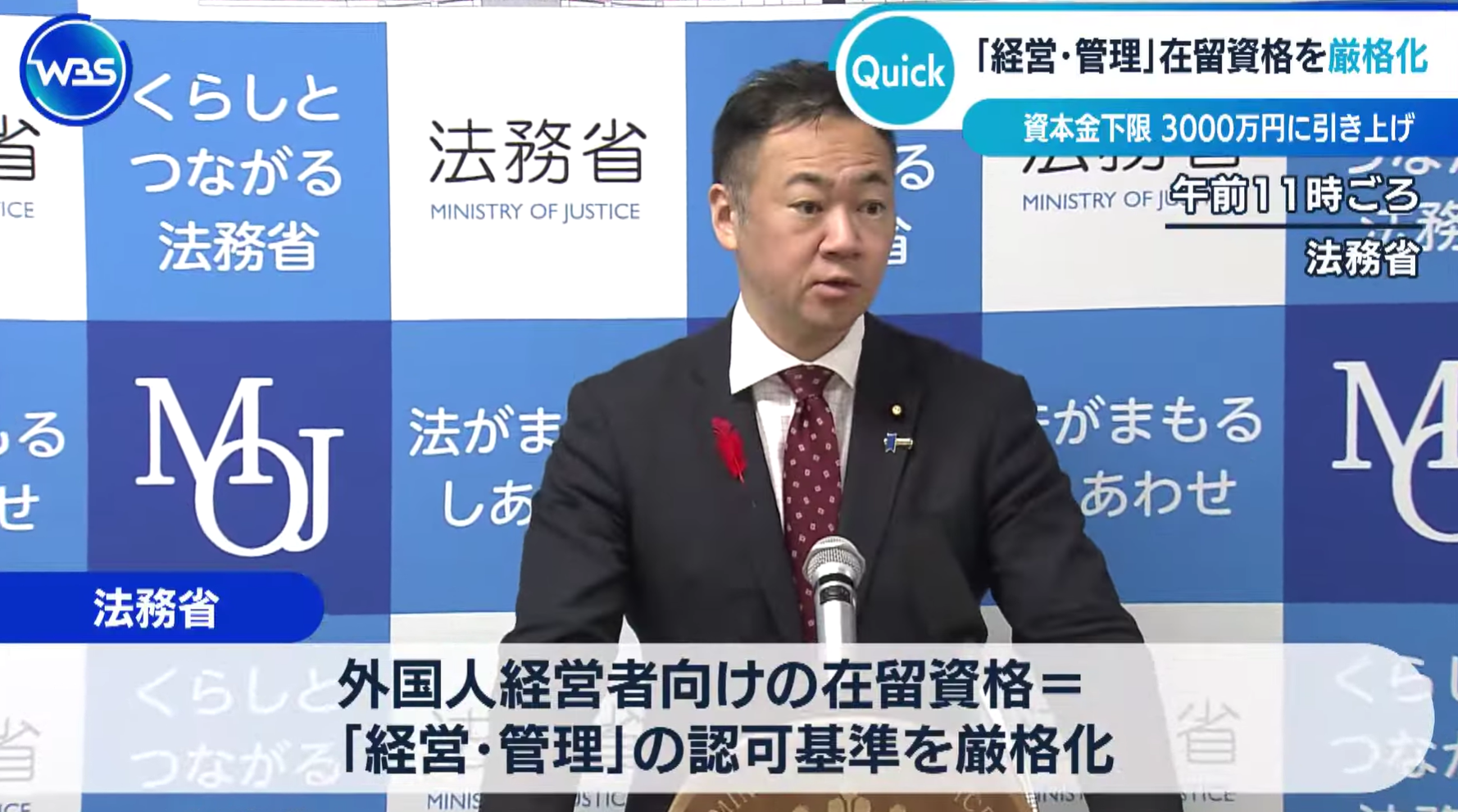 日本で起業する外国人の在留資格「経営・管理」について、法務省は10日、資本金を現行の6倍の3000万円以上とするなど、要件を厳格化した改正省令を公布した。日本語能力や経営経験、常勤職員の雇用も要件に追加され、16日に施行される。