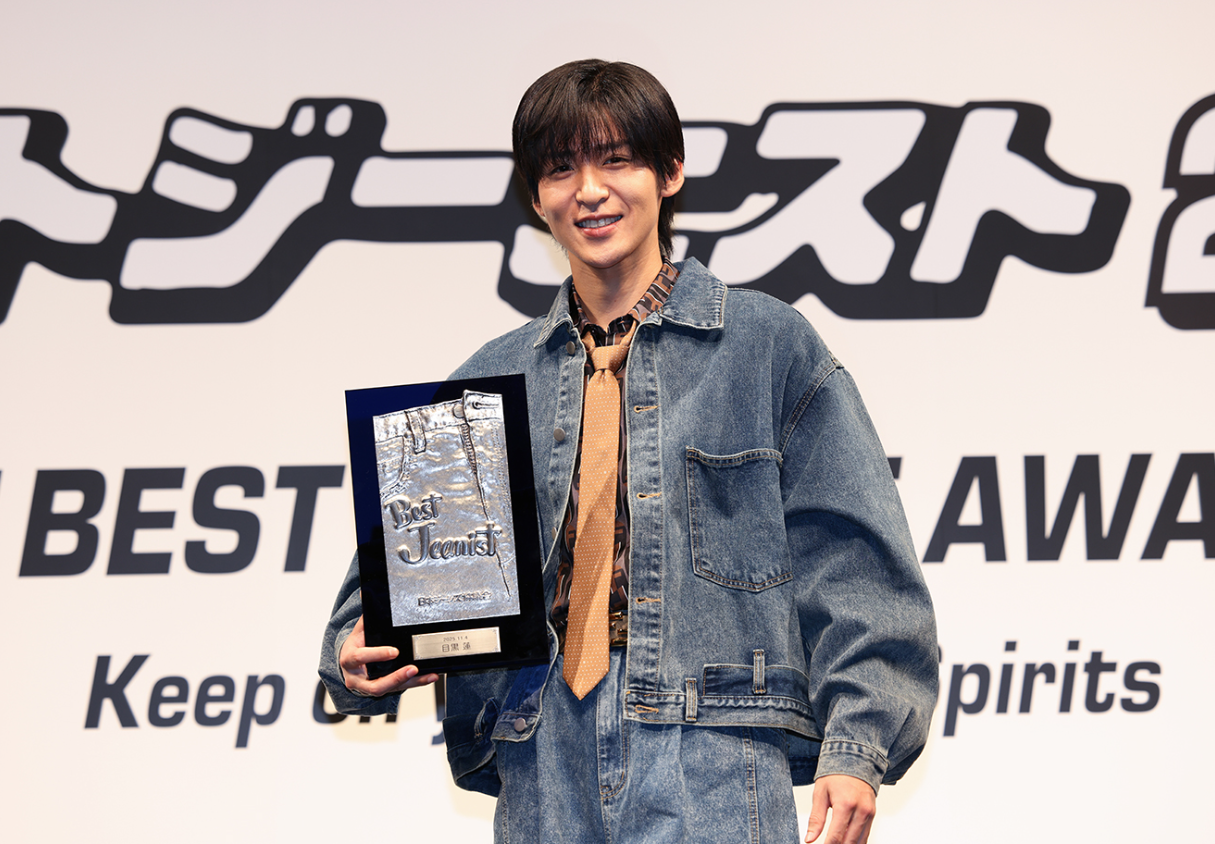 2年連続での受賞を果たした目黒蓮は「去年から引き続き、2年連続でベストジーニストという、名誉ある賞をいただけたことを本当にうれしく思います。去年いただいてから、もっともっとジーンズが好きになり本当に1年のうち350日ぐらいは、何かしらのジーンズを履いていたと思います。なので今回も本当にうれしく思います。ありがとうございます。」とコメント。