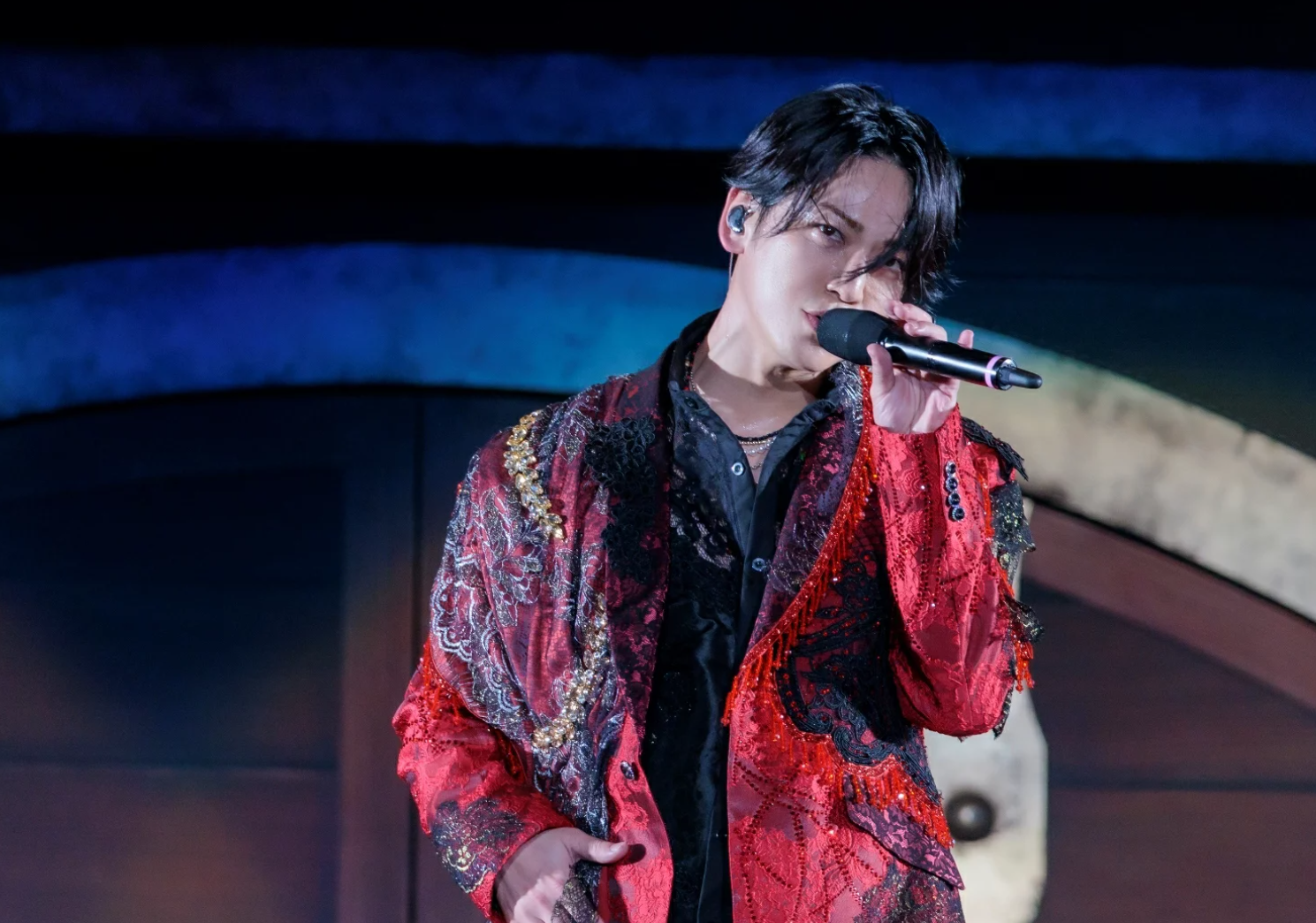 这是KAT-TUN首次在室外场馆举办演唱会,伴随着组合标志性的火花、烟雾和华丽特效,他们激情演唱了组合单曲和出道前的人气曲目。现场视频影像中也出现了前成员们的身影,出道曲《Real Face》更是使用了6人版本的音源。除了粉色(龟梨)、蓝色(上田)、紫色(中丸)的三人代表色外,在前成员的歌曲部分,舞台还用烟雾和灯光呈现了红色(赤西仁)、黄色(田中圣)和橙色(田口淳之介)三位前成员的代表色,营造出热烈氛围。