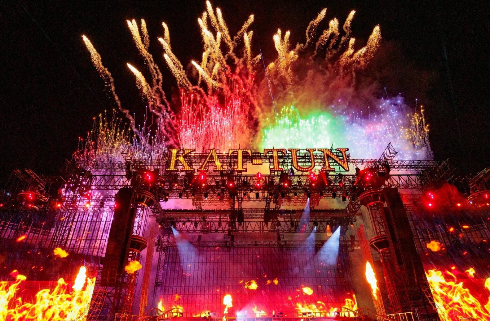 亀梨も「終わりだ…」と噛みしめるようにつぶやきつつも「とにかくKAT-TUNは自分の青春だったし。最初から最後までKAT-TUNは大切だったし、KAT-TUNというグループは自分の進んでいく道の中のプライドであり、美学であり、誇りでした」と目に涙を溜め、言葉を詰まらせながら胸を張った。フィナーレでは花火や炎の特効が連発されるなか、ステージの上でシャンパンを開ける大騒ぎ。