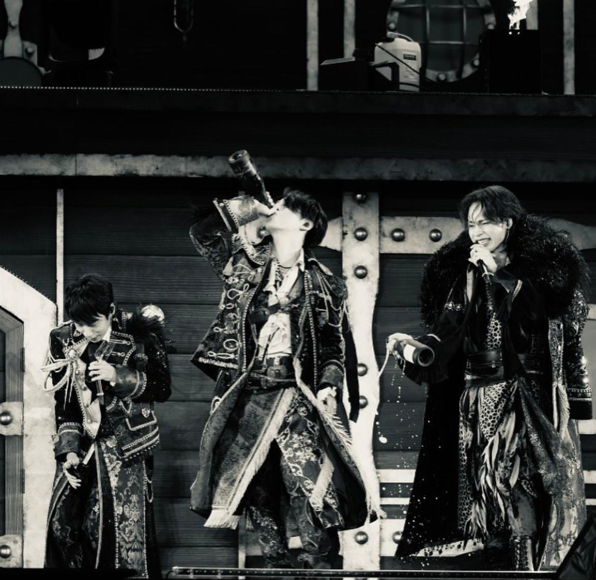 龟梨在ins中写道:“虽然发生了各种事情,但真的是一段美好的旅程啊,感谢所有的船员”“Thank you”,并分享了和成员上田龙也和中丸雄一的合照。虽然是三人合照,但他却在ins的标签中加上了“#赤西仁”“#田口淳之介”“#田中圣”三位出道初期三位原成员的名字。