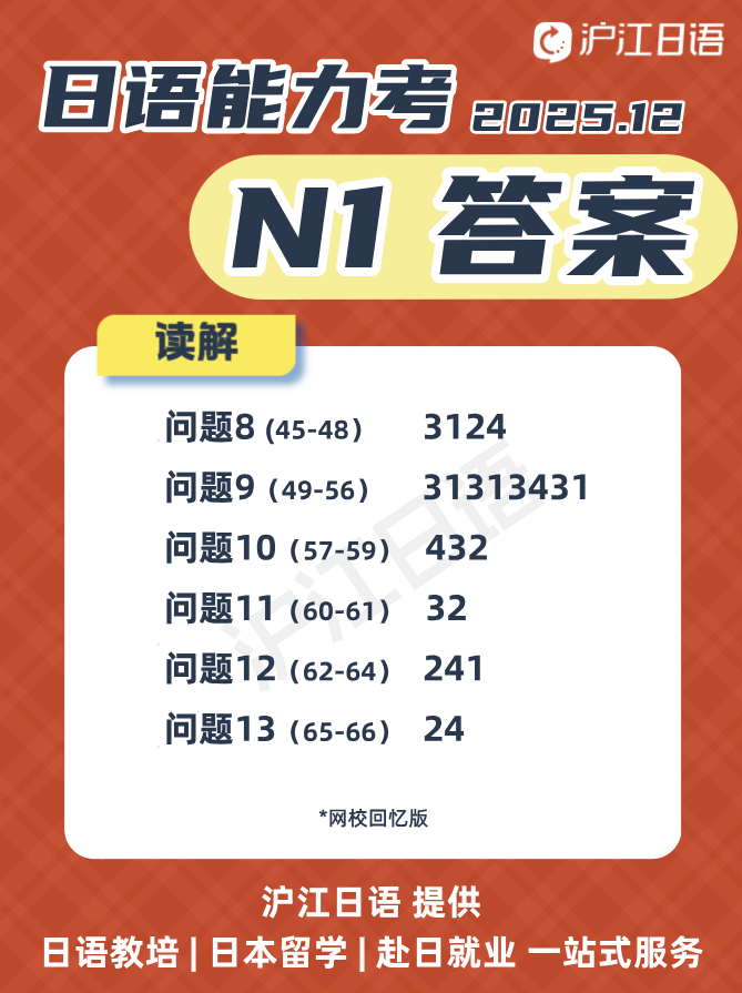 2025年12月日语能力考试答案持续更新中!保持关注和刷新哦~