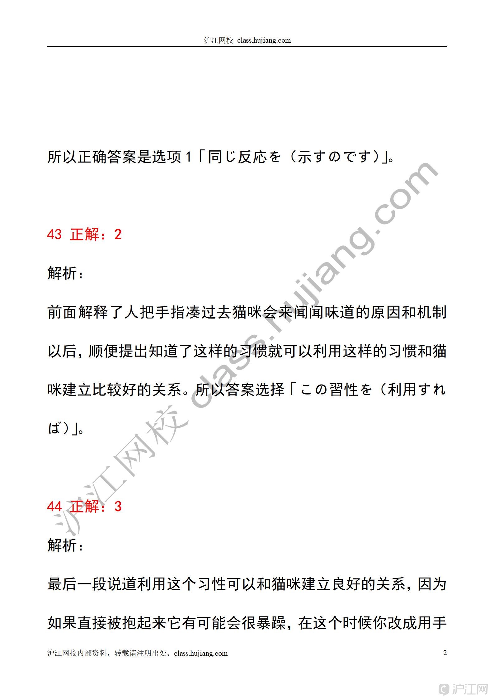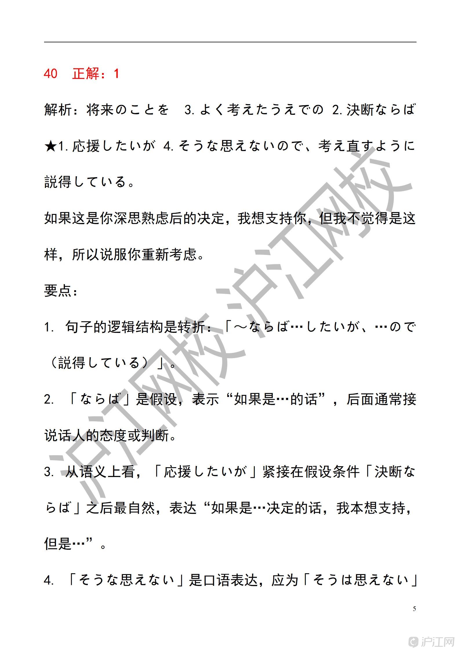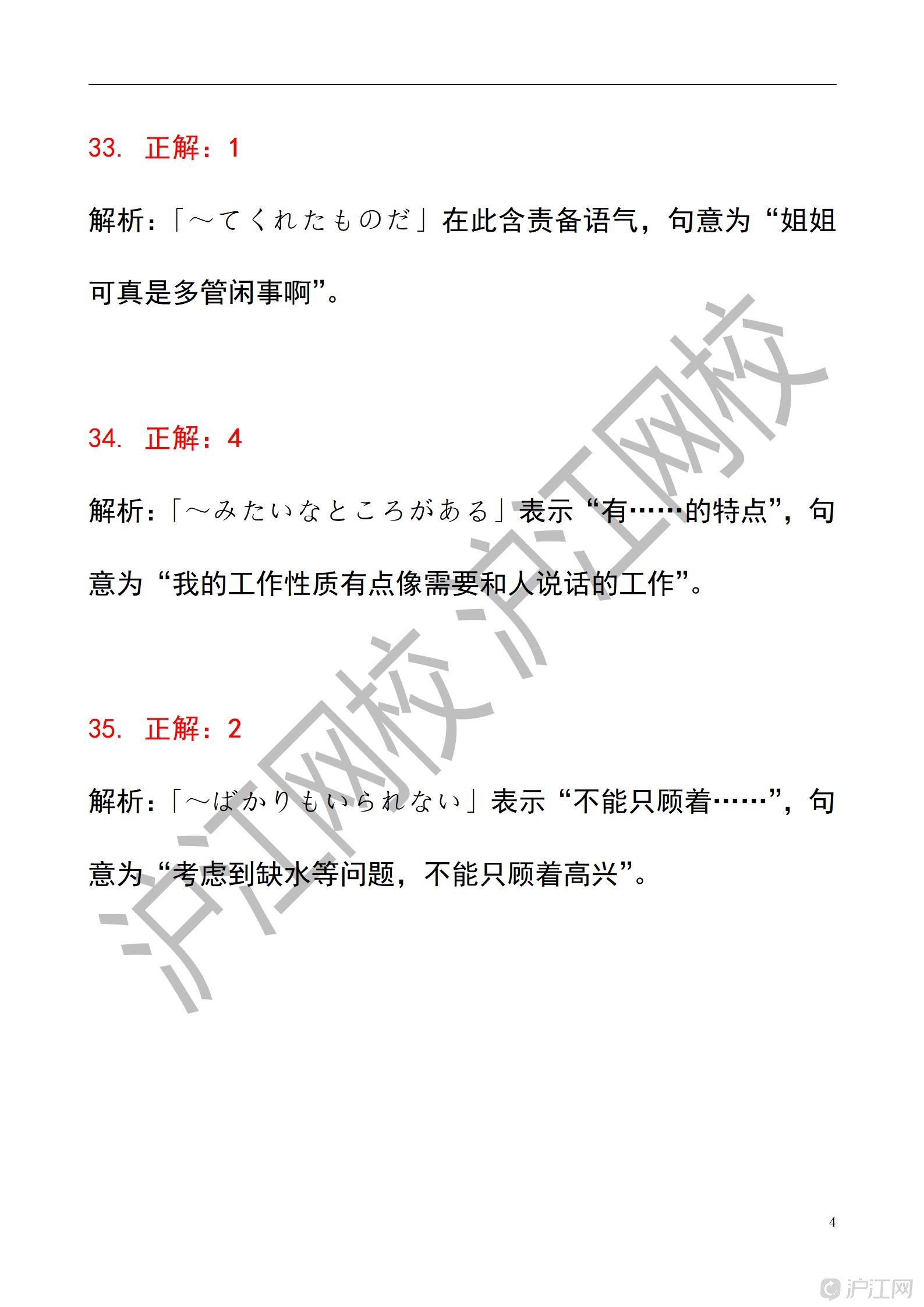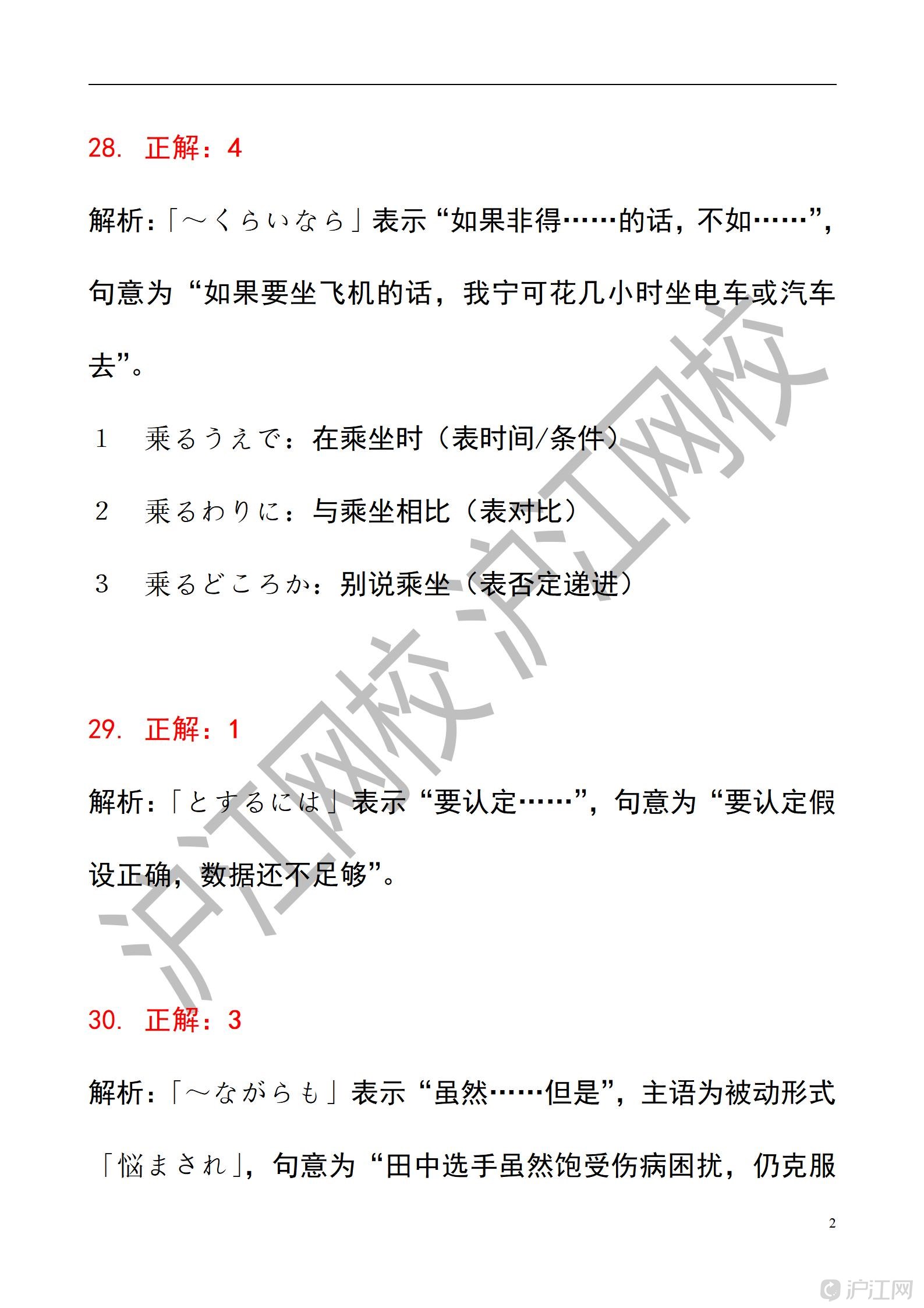 2025年12月日语能力考N1语法答案解析(沪江网校)