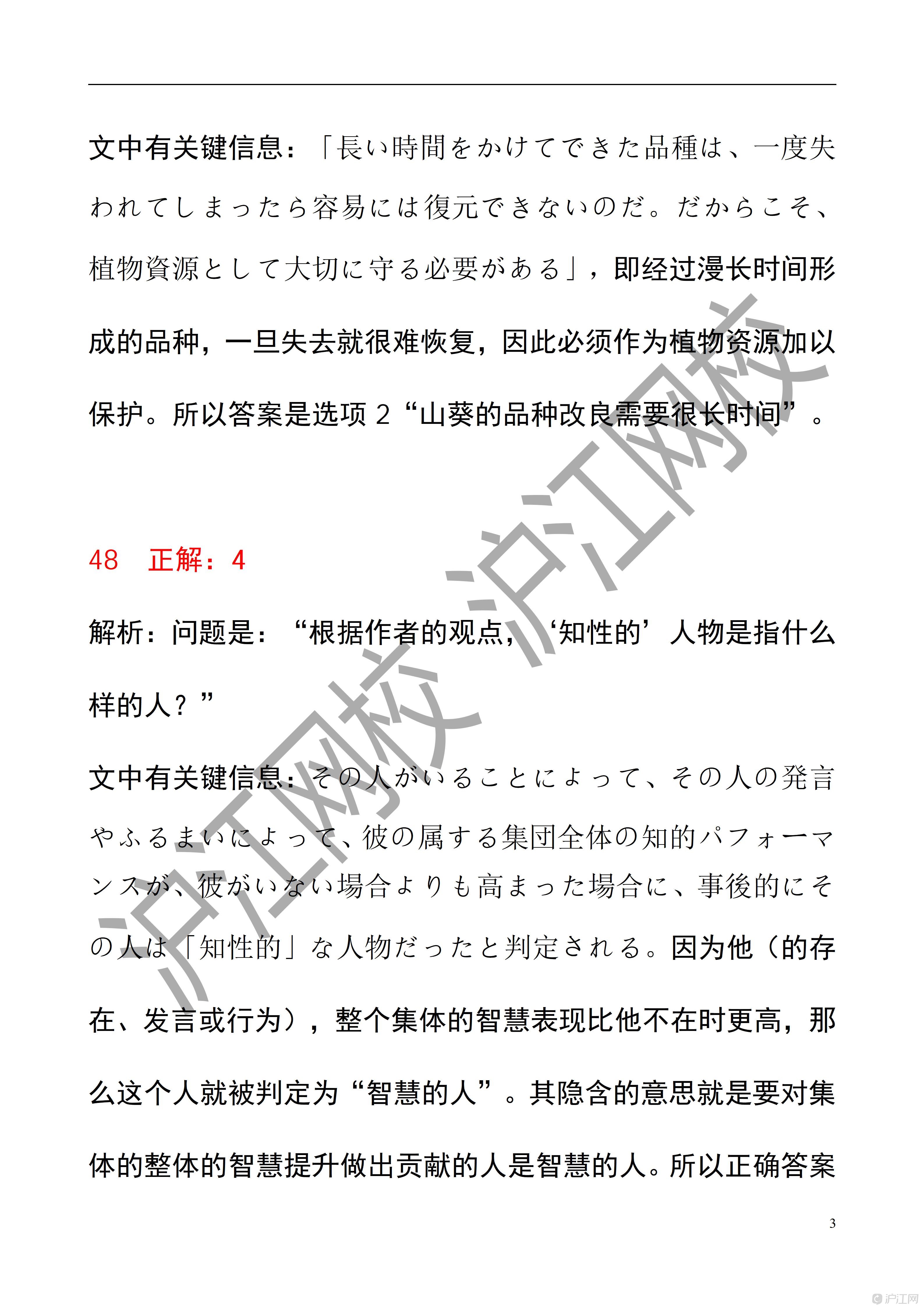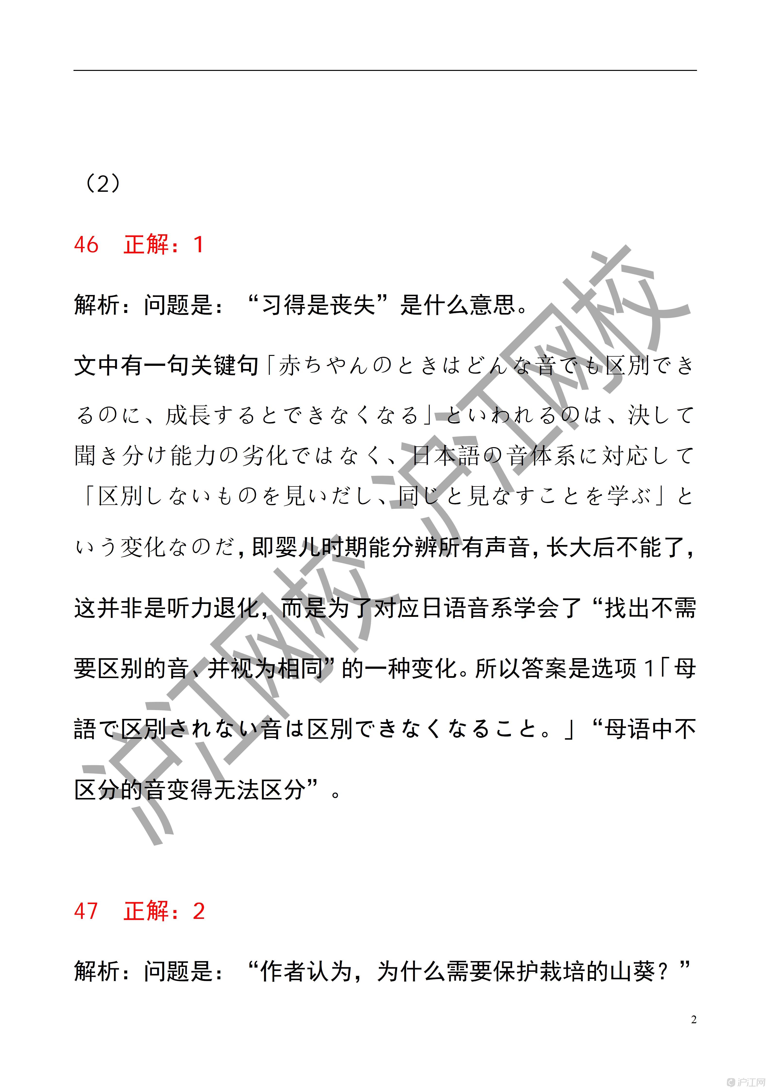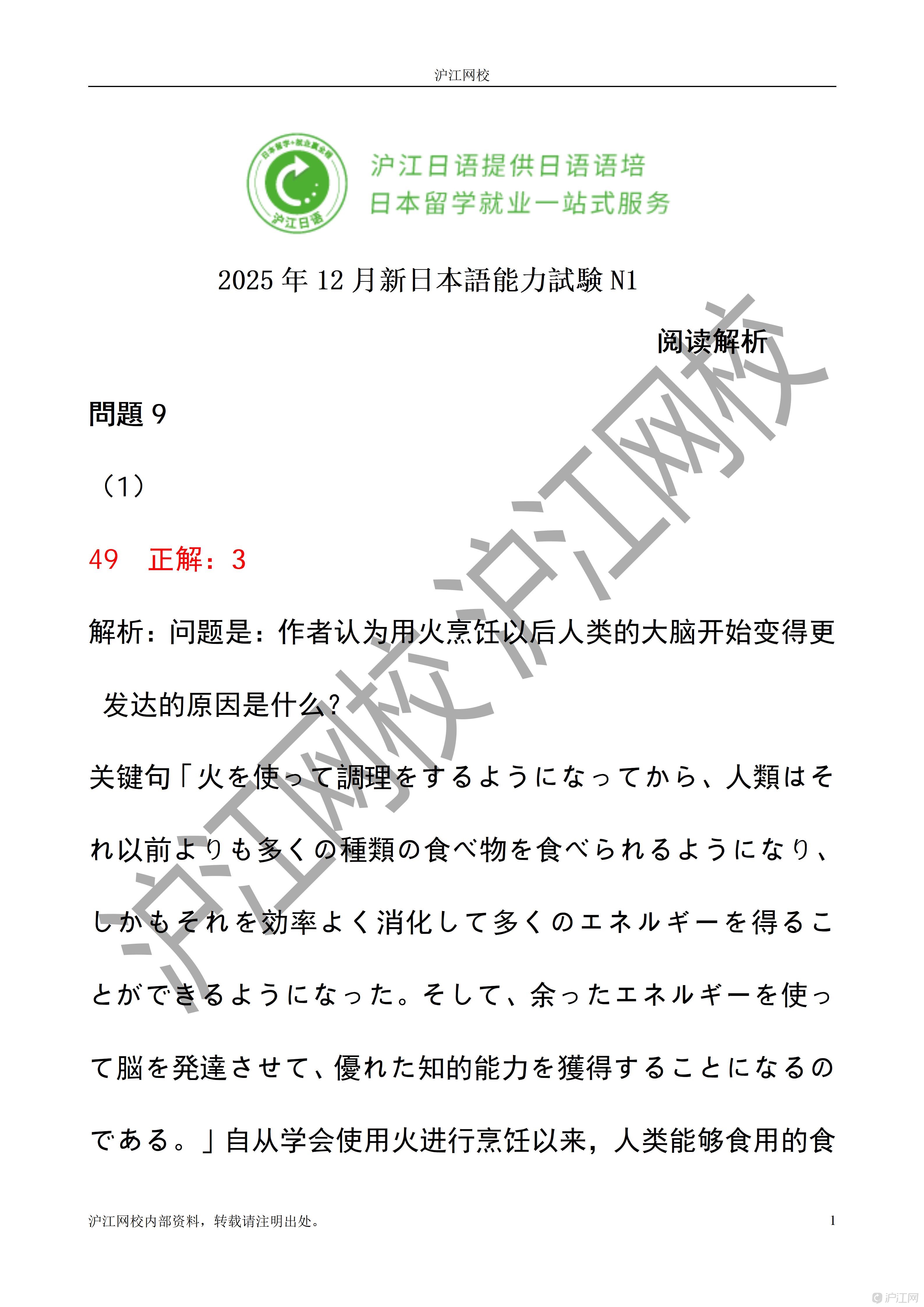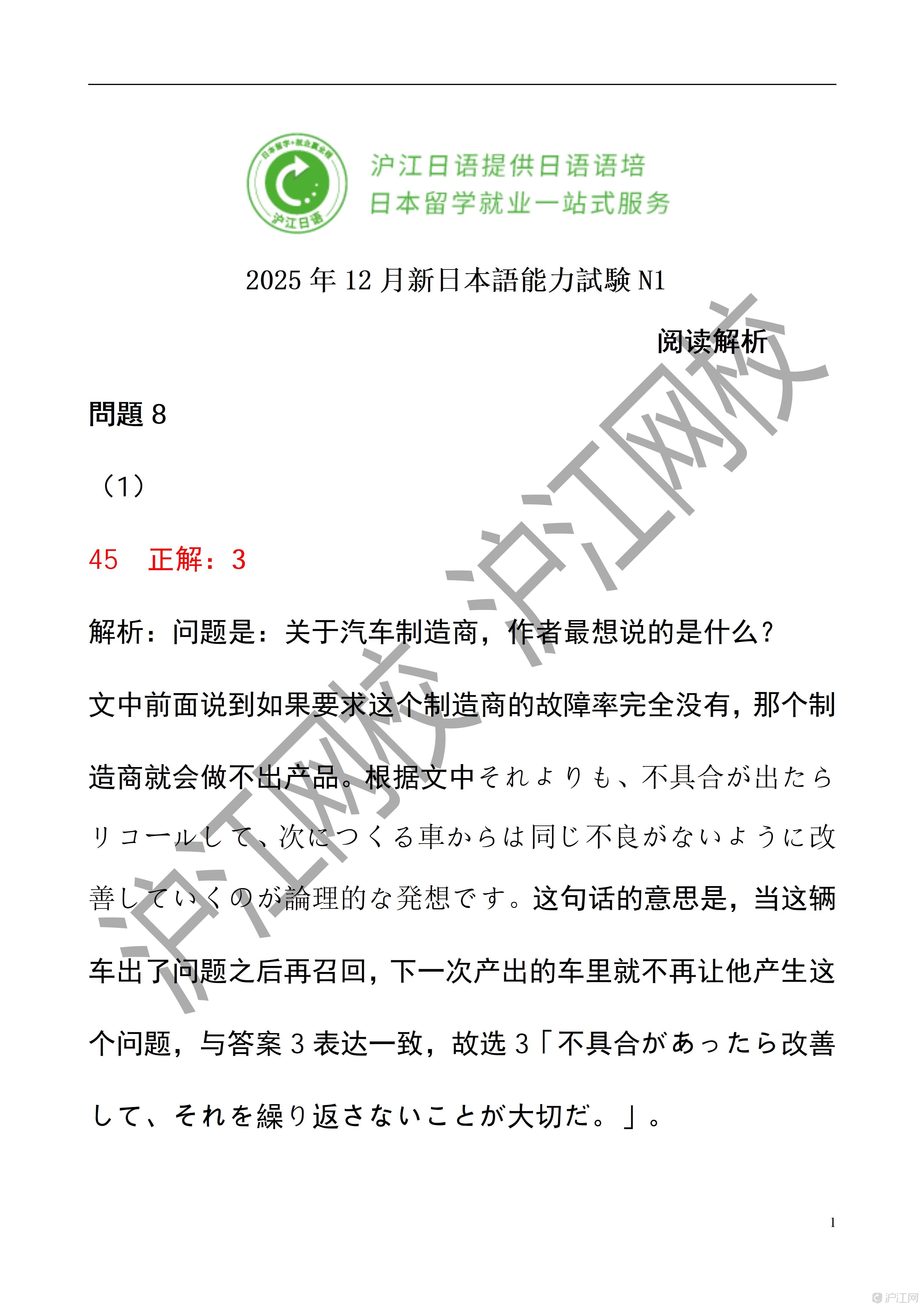 2025年12月日语能力考N1读解答案解析(沪江网校)