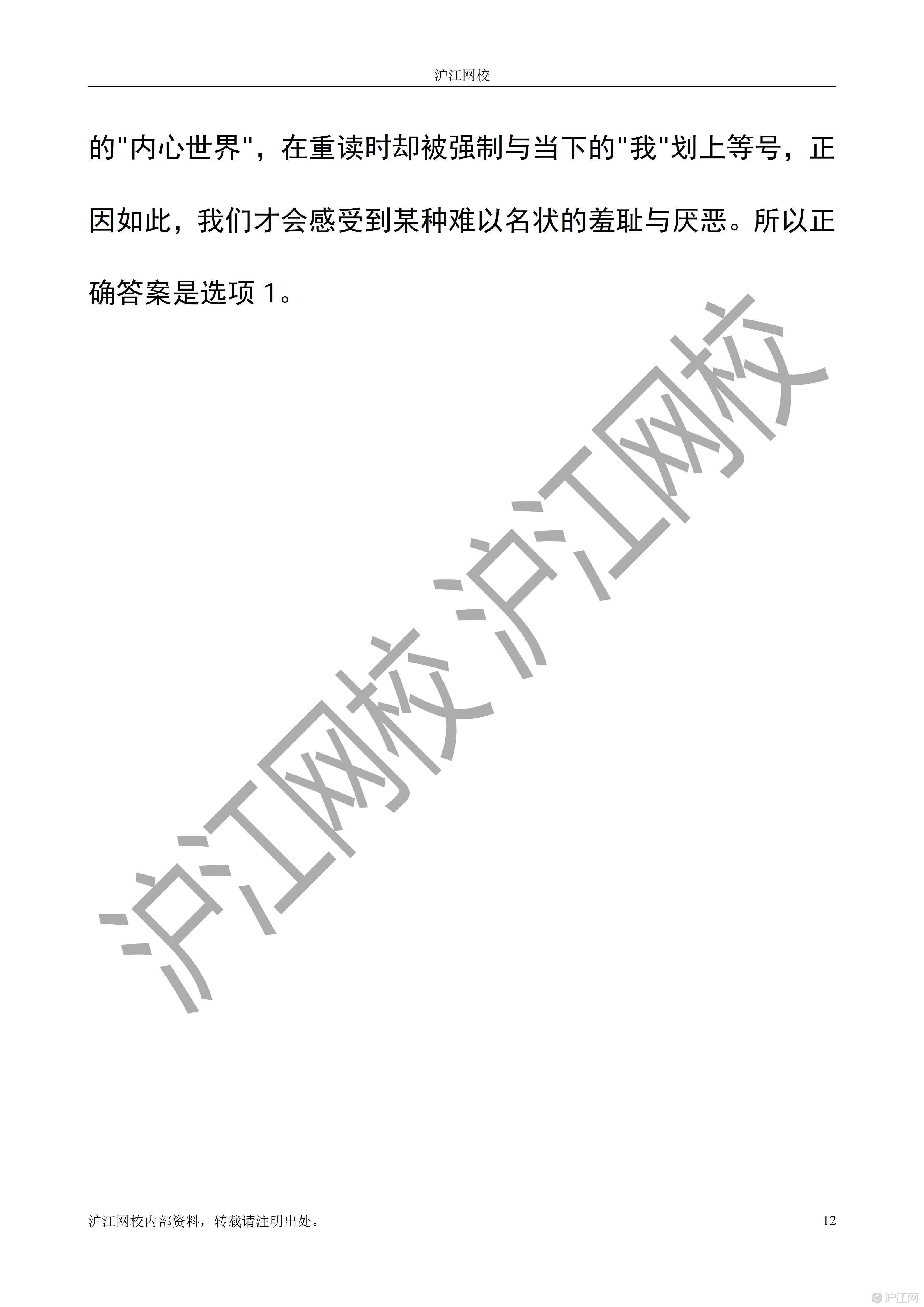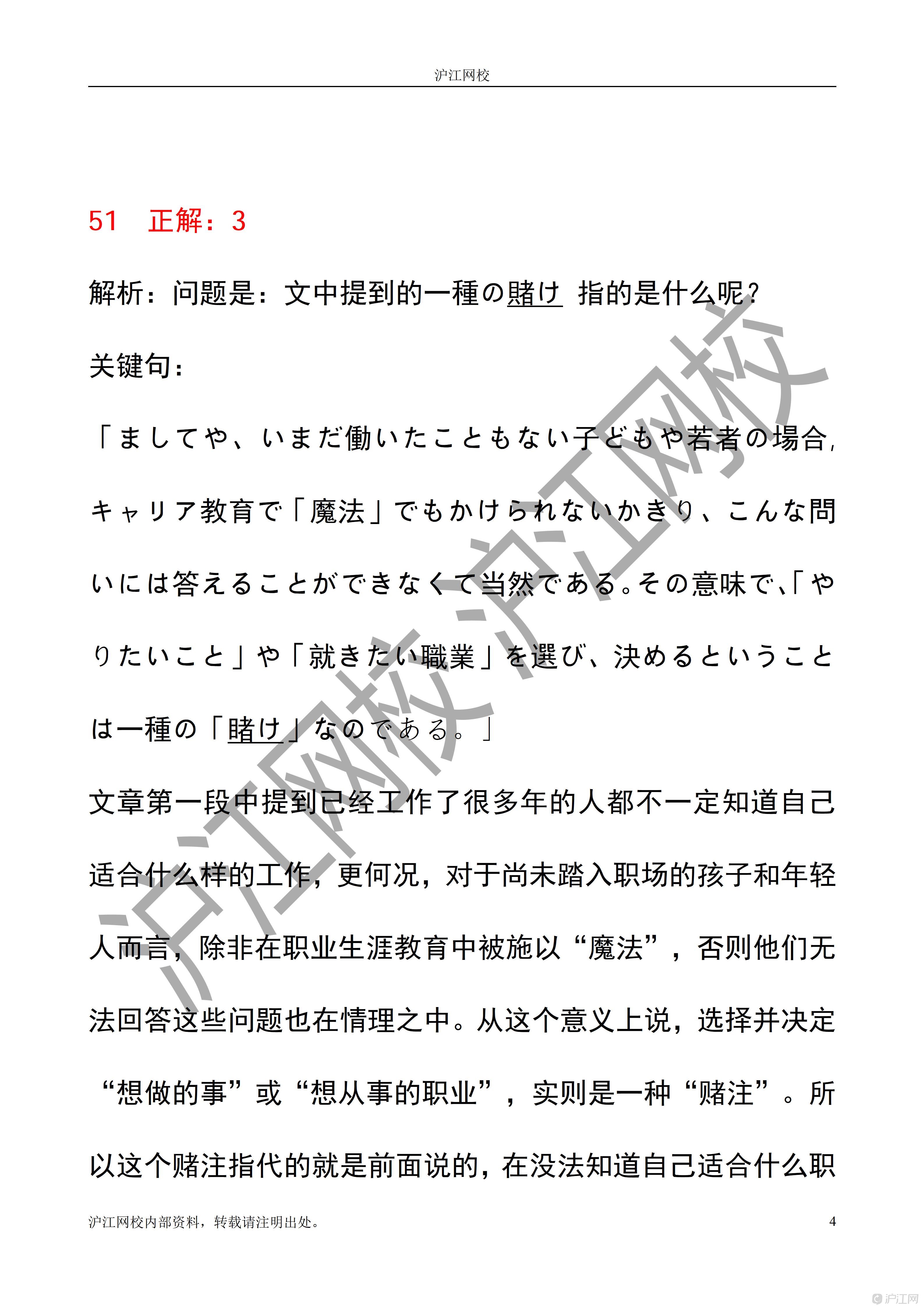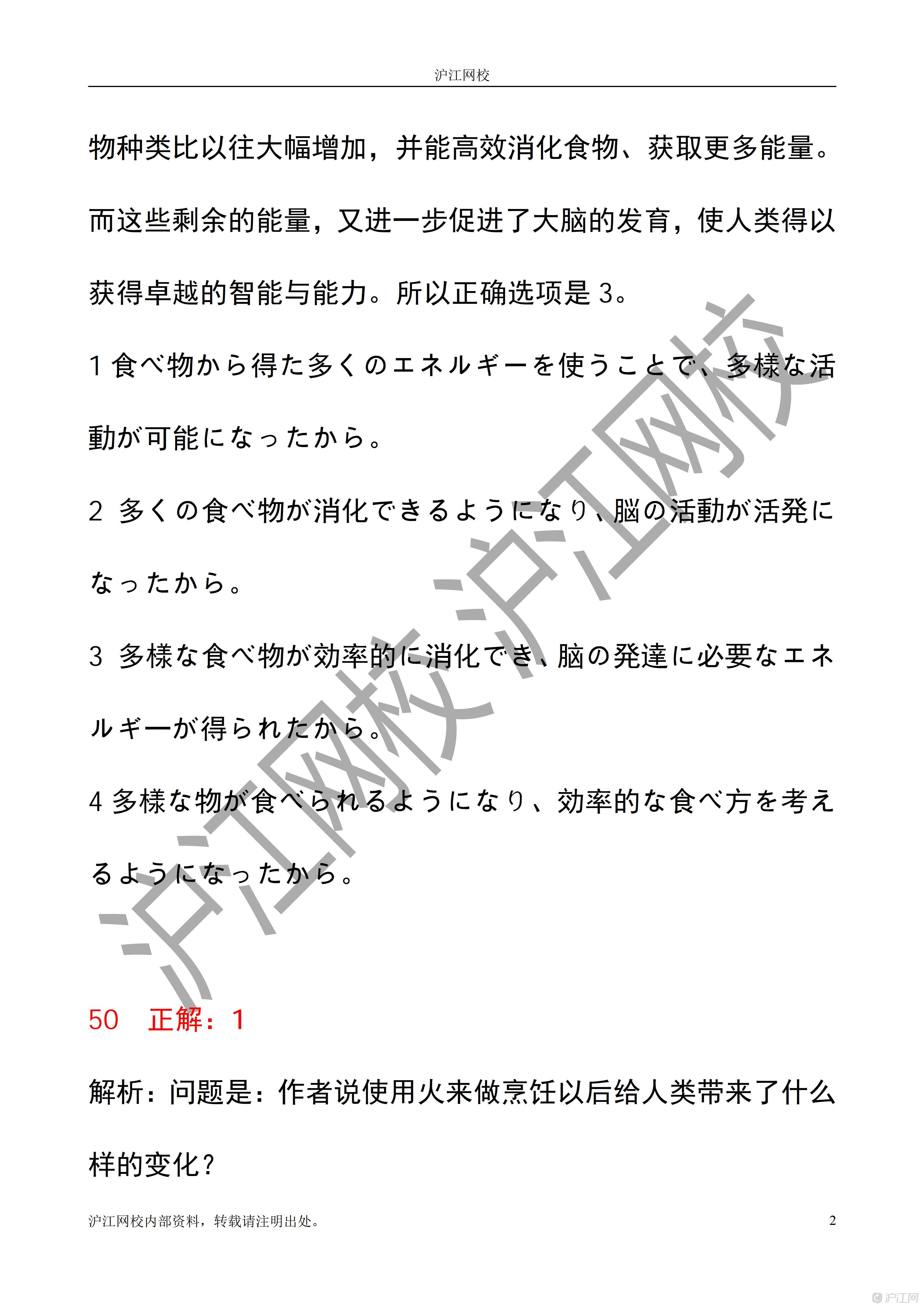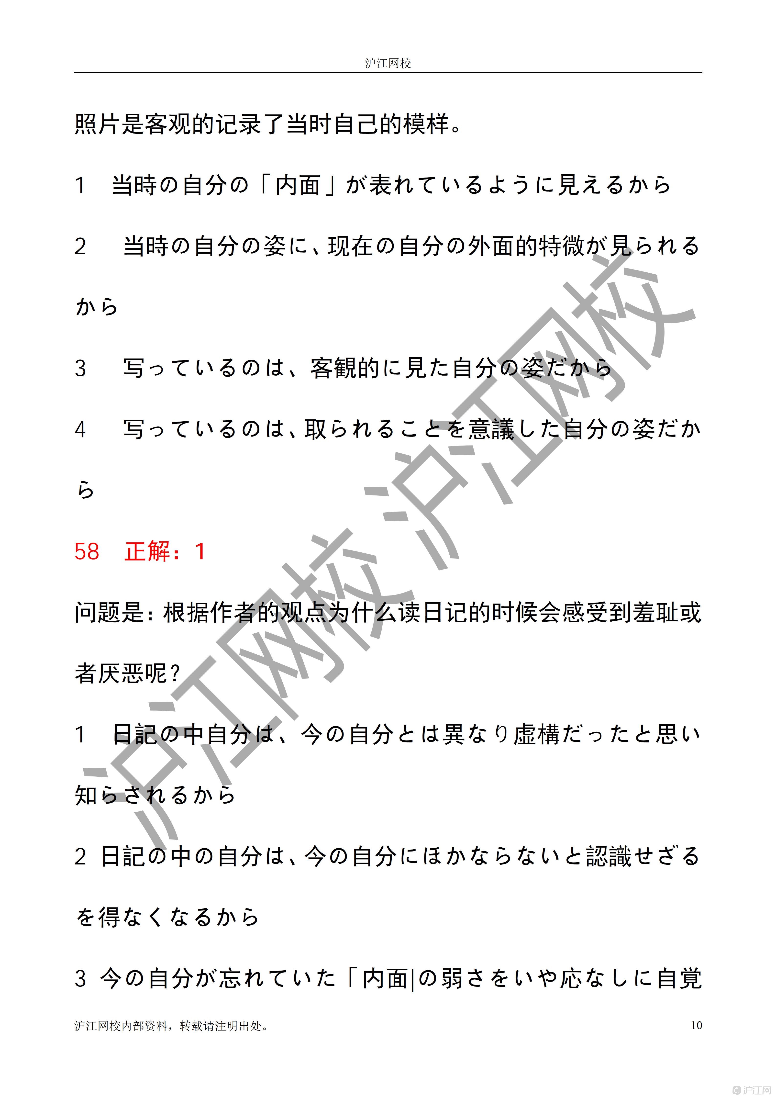 2025年12月日语能力考N1读解答案解析(沪江网校)