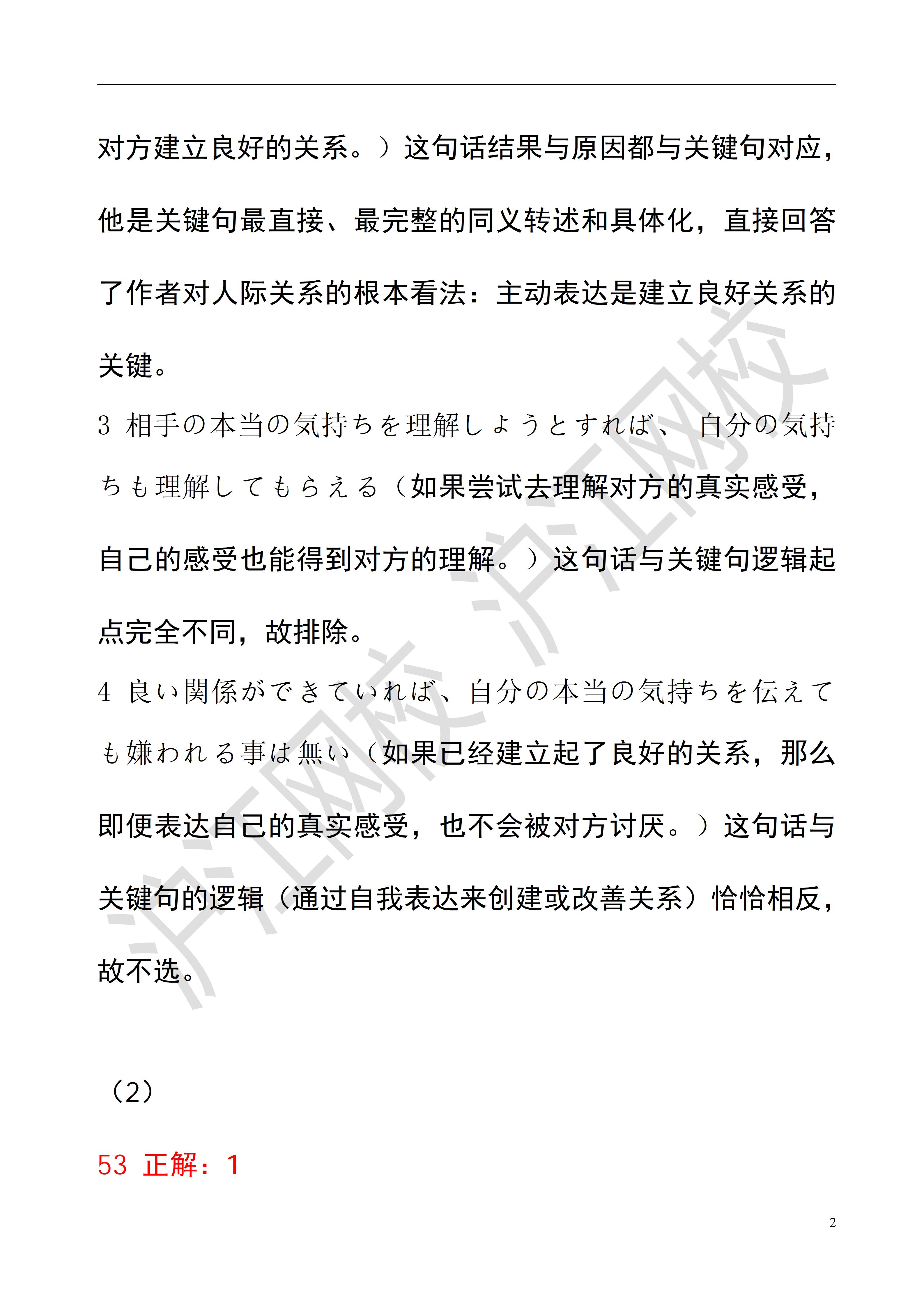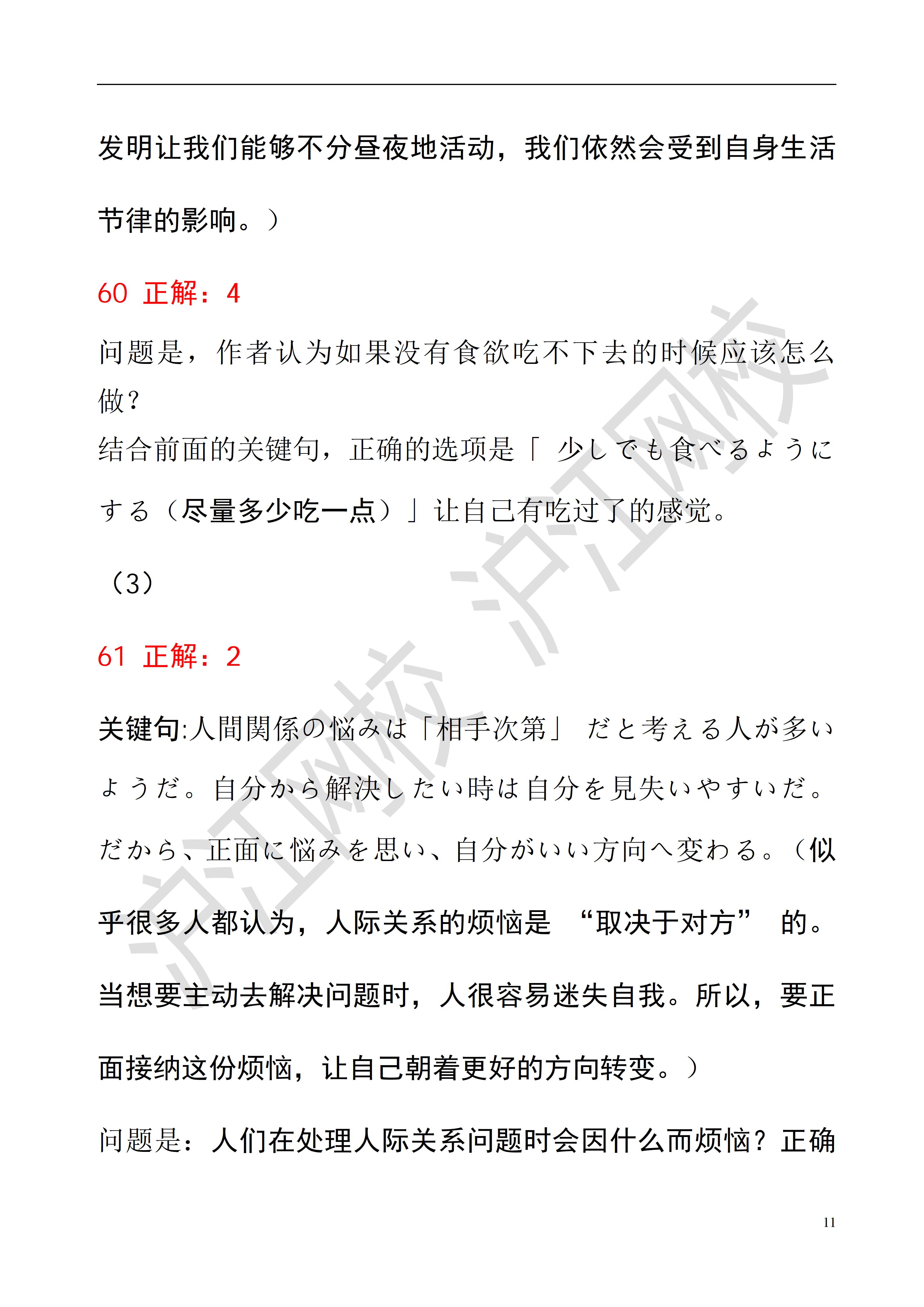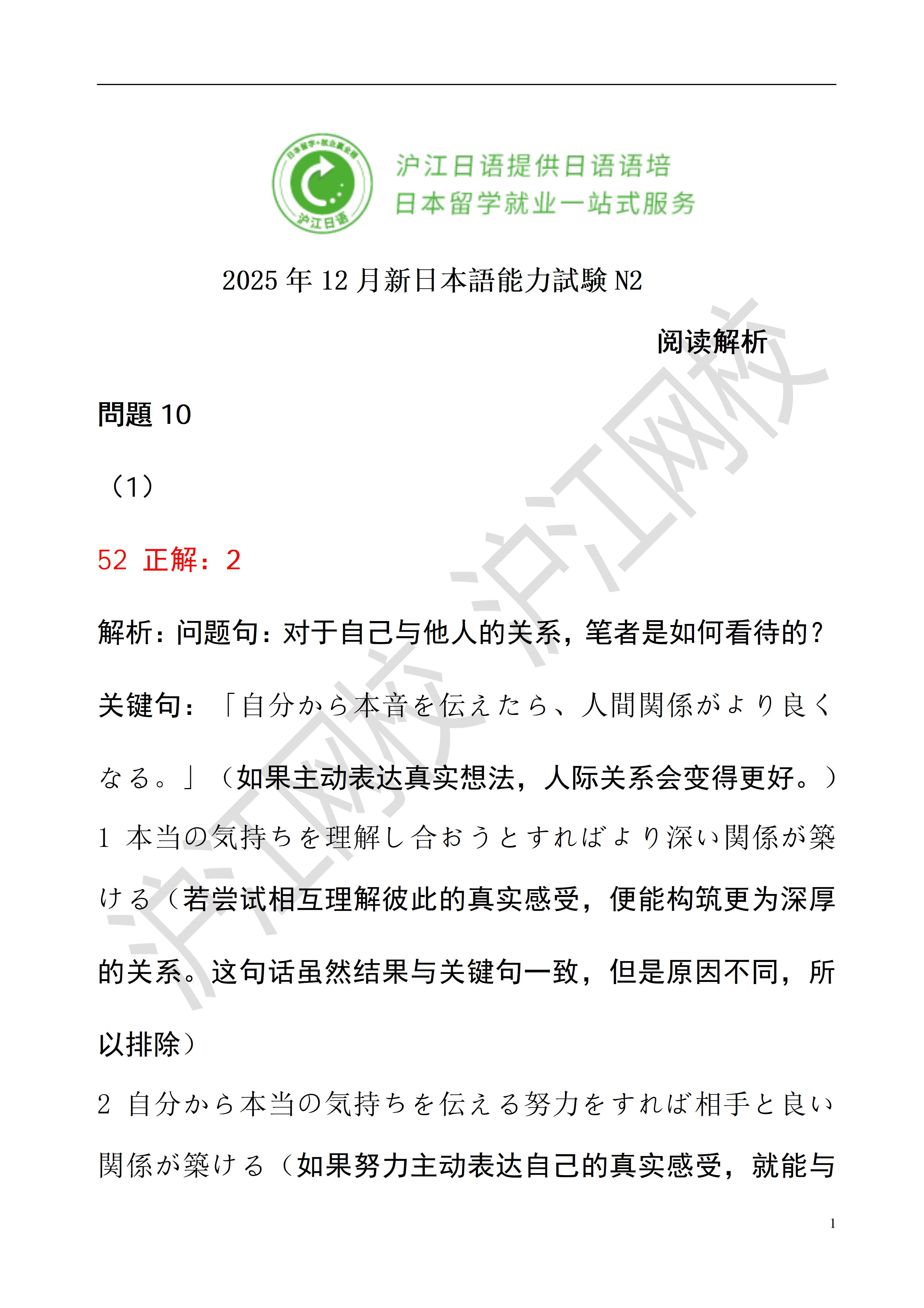 2025年12月日语能力考N2读解答案解析(沪江网校)