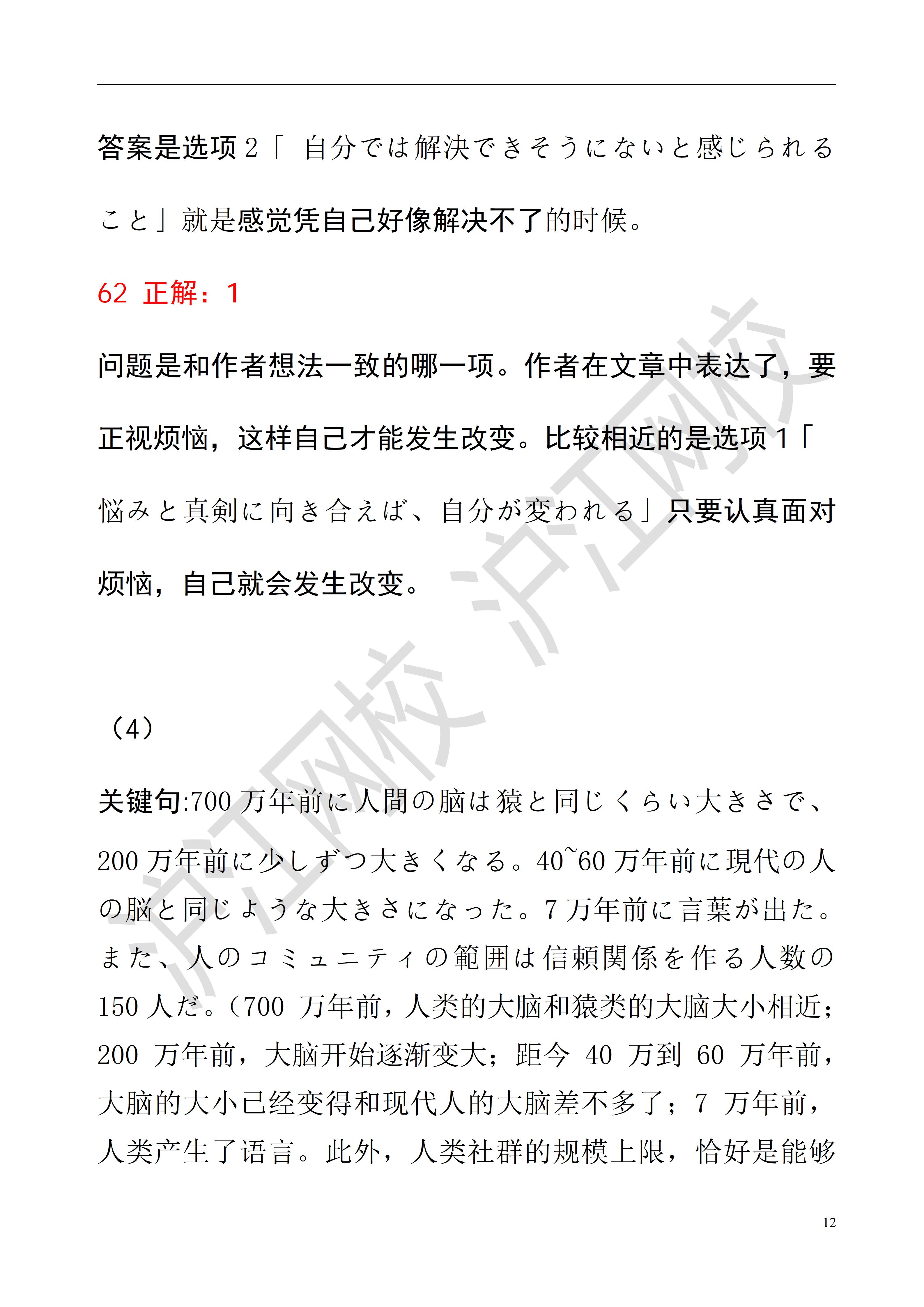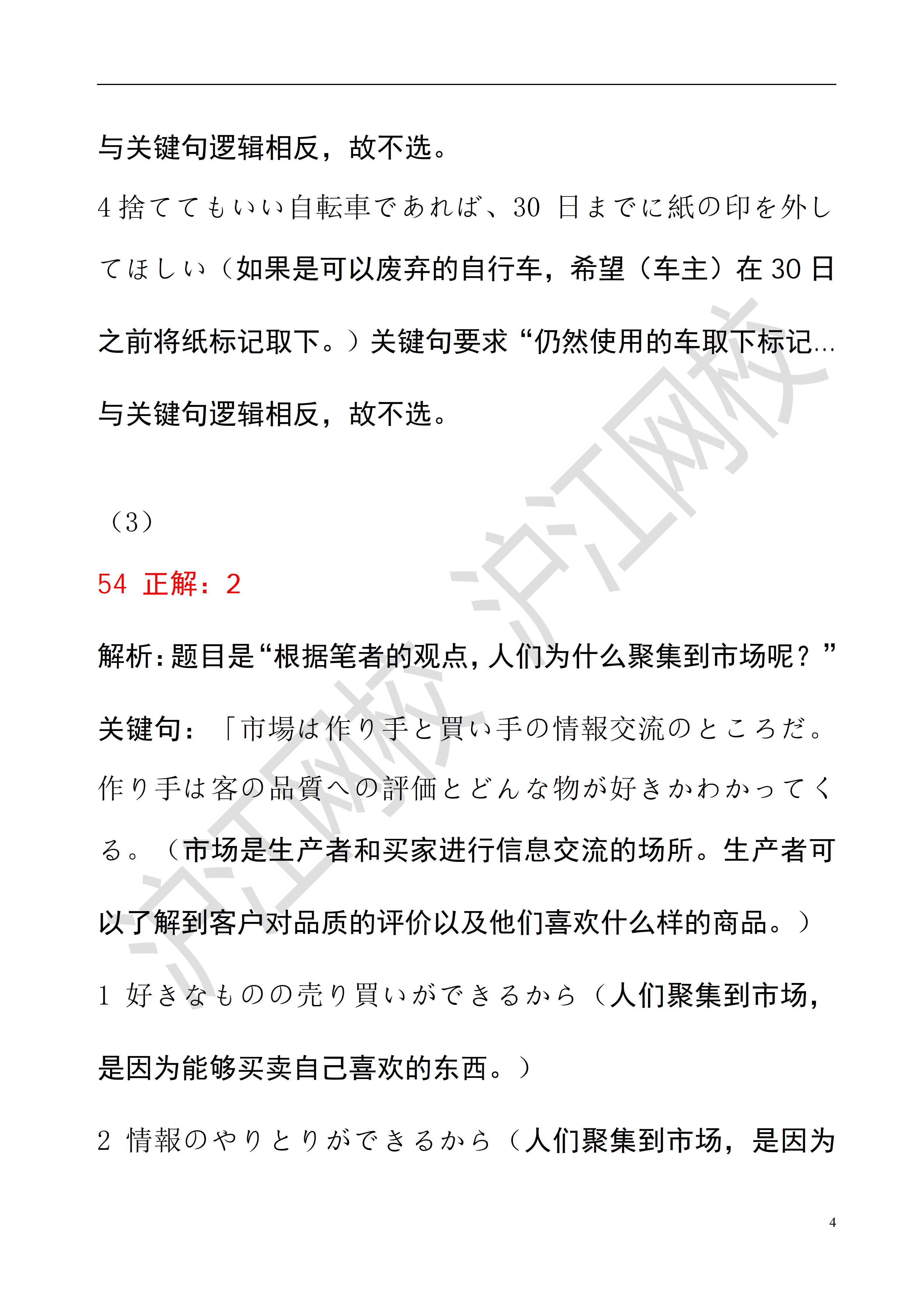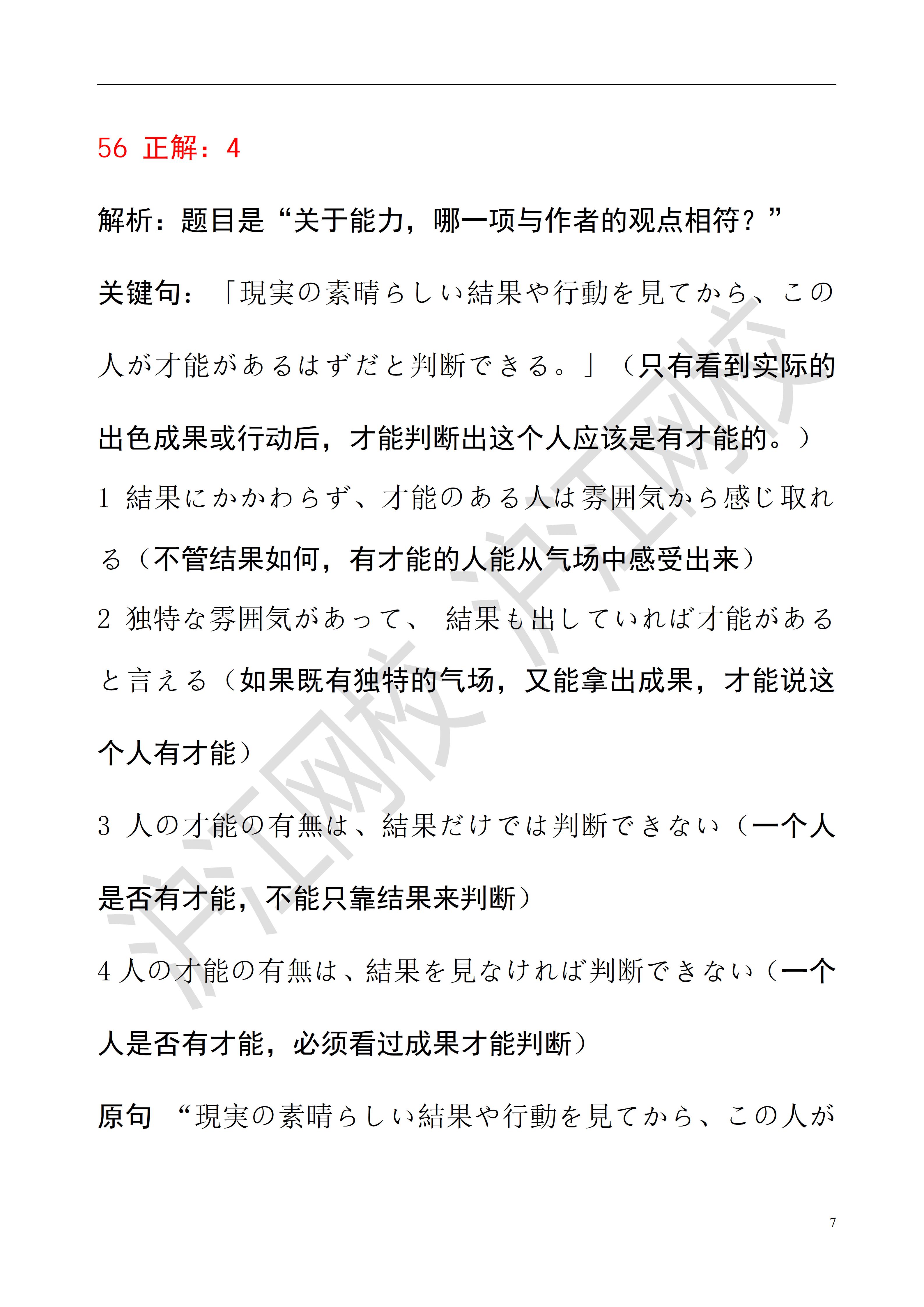 2025年12月日语能力考N2读解答案解析(沪江网校)
