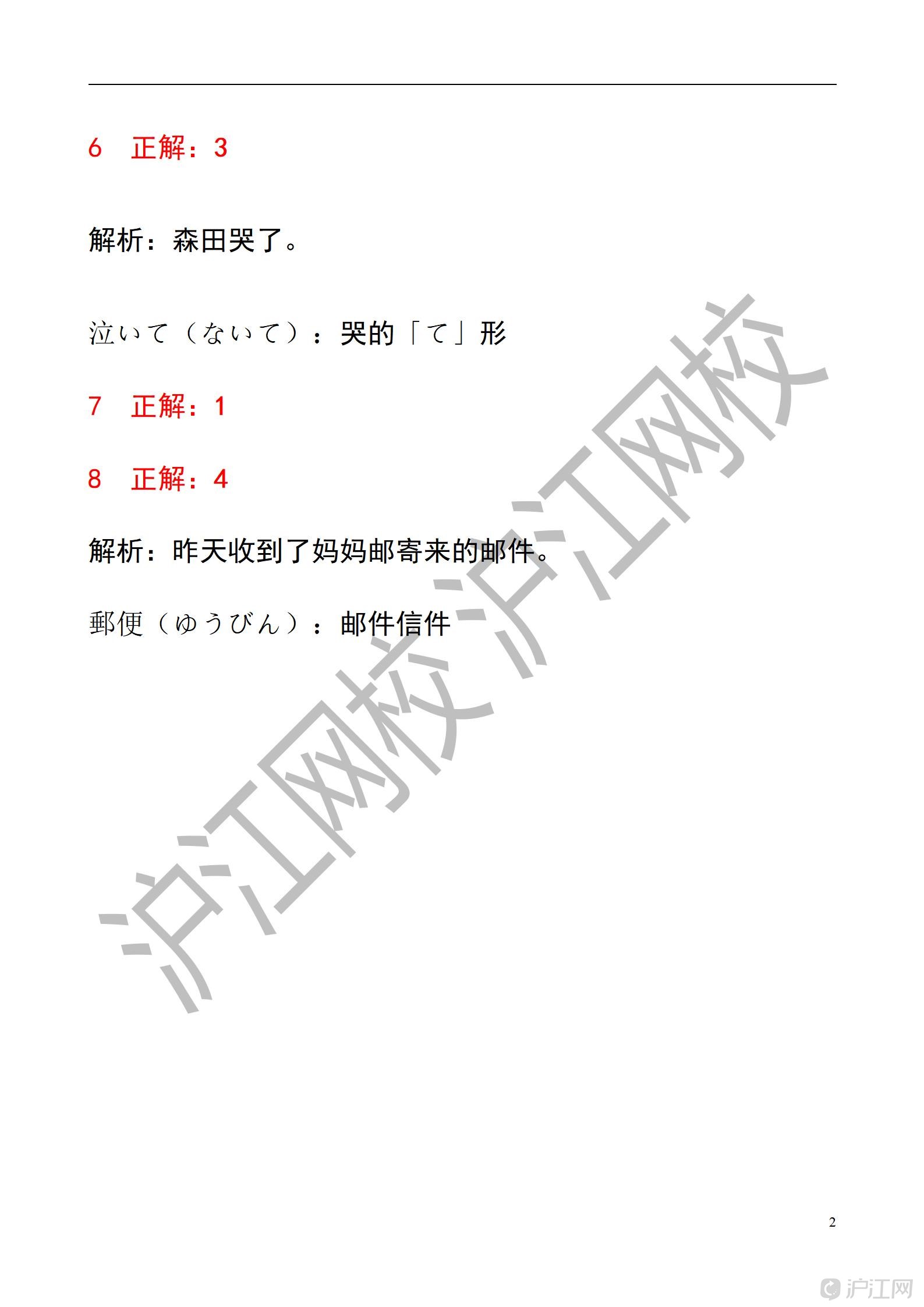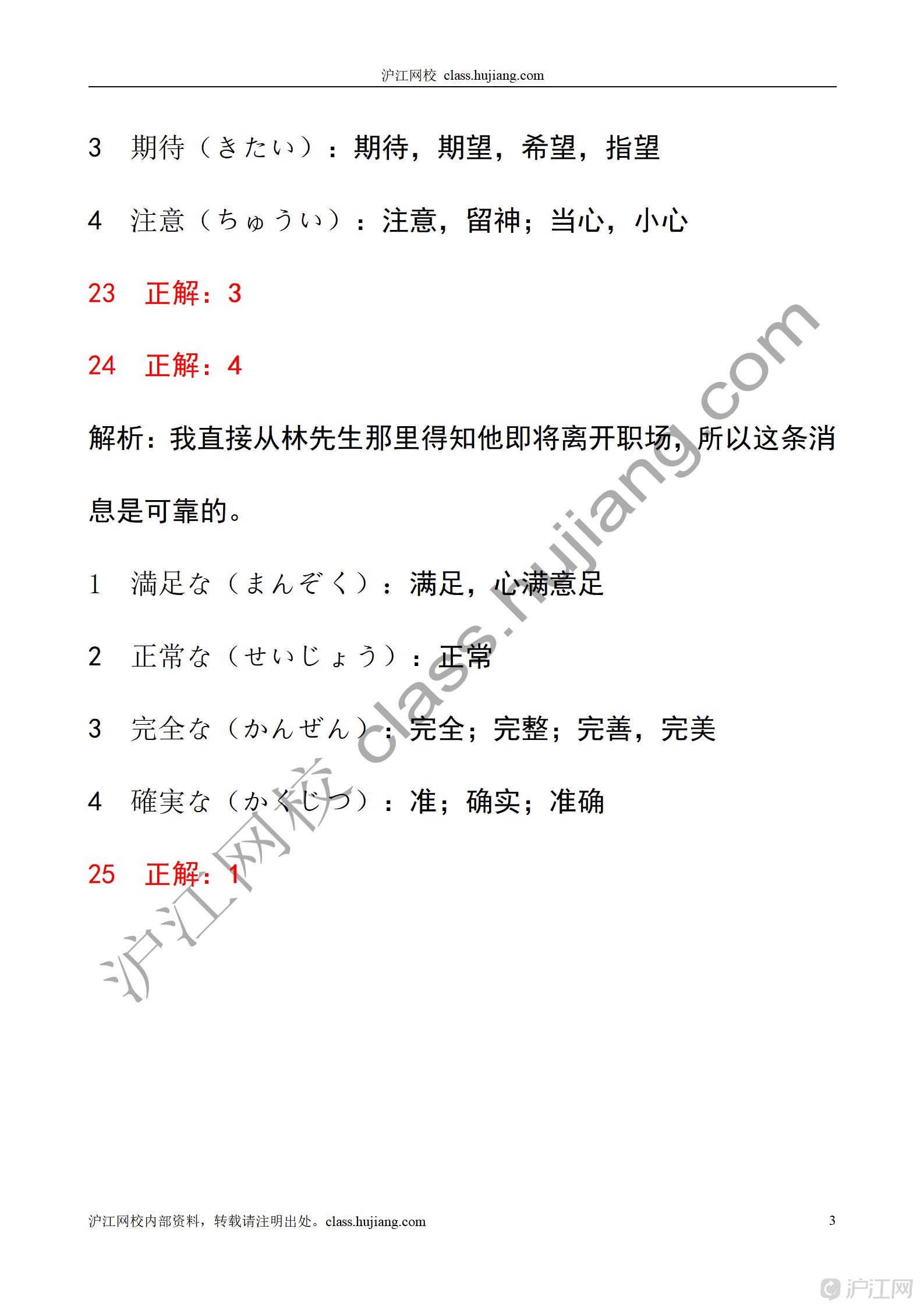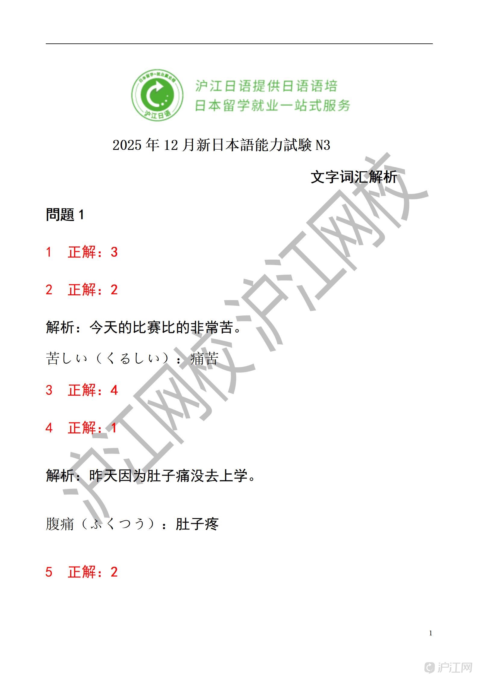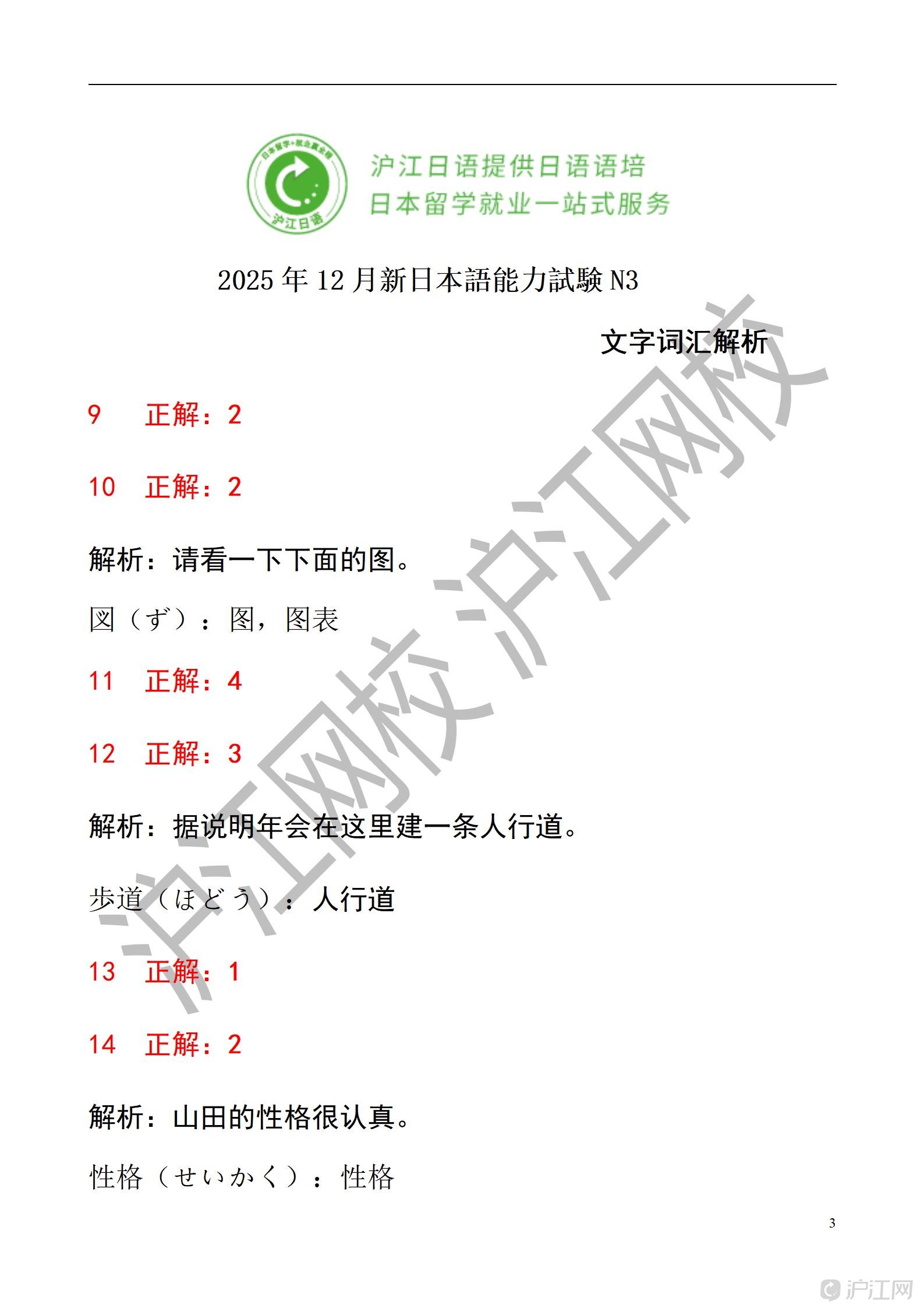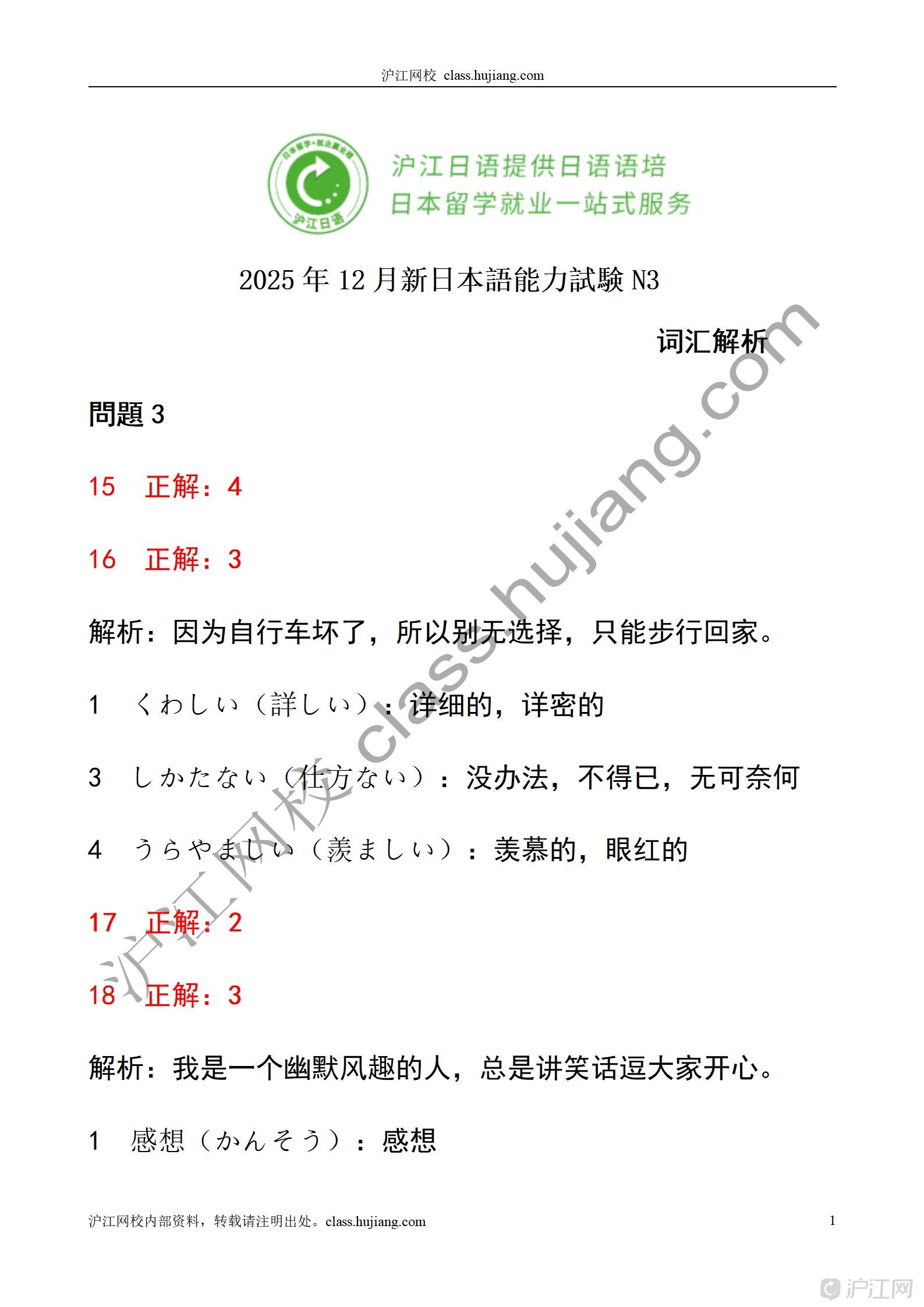 2025年12月日语能力考N3词汇答案解析(沪江网校)