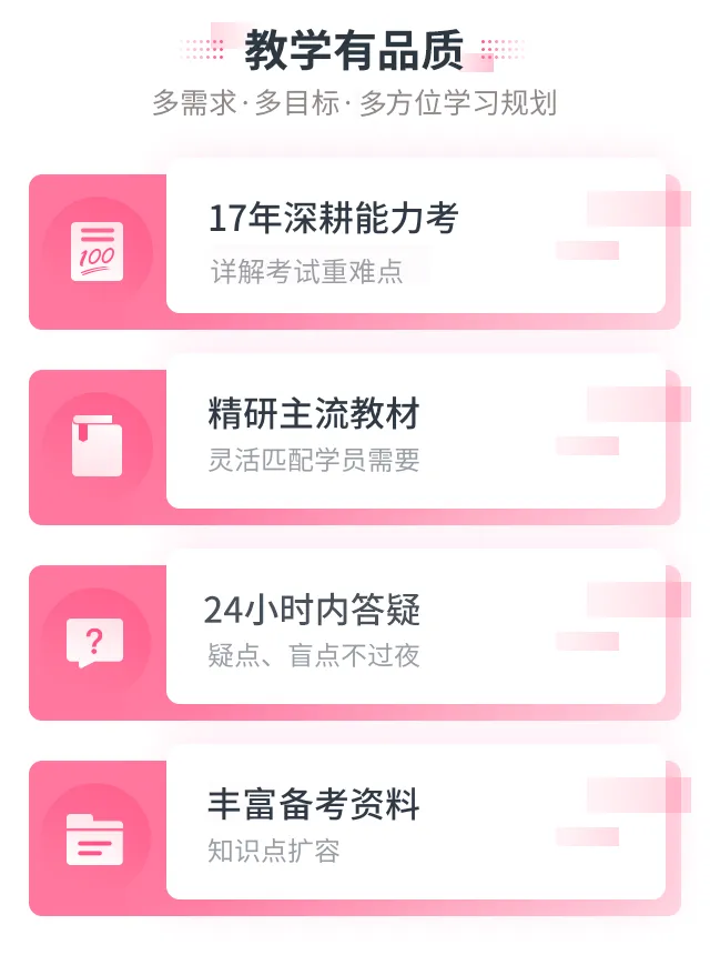 目前距离7月能力考仅剩半年,大家一定要抓紧时间备考,从中高级别起,临时抱佛脚很难管用,需要扎实学习打基础,考前做好专项冲刺,才能一把拿下冲高分!
