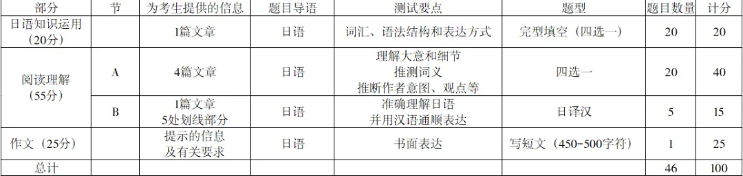 每年实施两次考试,试题以语言知识(文字词汇、语法)、阅读、听力三大项构成。