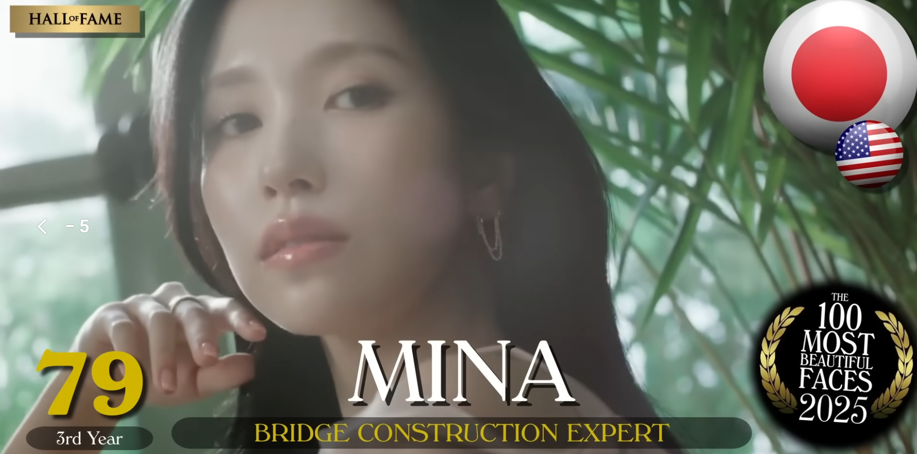 日本人では31位にTWICEのサナ、35位にLE SSERAFIMのKAZUHA、44位にMEOVVのANNA、54位に元AKB48の大和田南那、75位にモデルの池田穂乃花、79位にTWICEのミナが選ばれた。日本の血を引くカナダ人女優のミク・マルティノーも19位に入った。