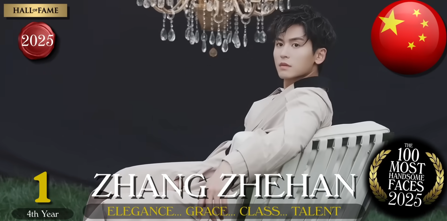 “世界最帅面孔100人”榜单方面,冠军是中国演员张哲瀚,亚军是澳大利亚演员雅各布·艾洛蒂,季军是新加坡演员孙政。