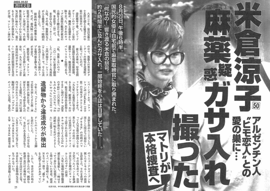「米倉さんの薬物疑惑は、2025年10月に『文春オンライン』が報じました。同誌によると、今年6月上旬から“マトリ”の捜査線上に米倉さんが浮上していることがわかり、8月20日に東京都内にある自宅マンションに家宅捜索が実施されたとのことでした。米倉さんは、予定されていたイベントを立て続けてキャンセルしていましたが、公にコメントするのは今回が初めてです」(芸能ジャーナリスト)