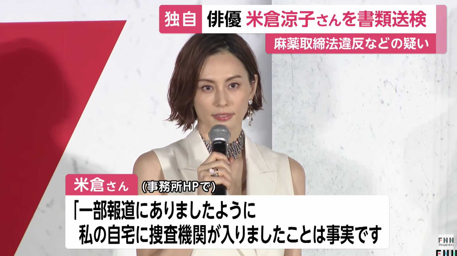 米倉は昨年12月26日、自身の公式サイトで「自宅に捜査機関が入ったことは事実」と明かし、「捜査に全面的に協力する」「協力により、一区切りついたと認識」との声明を発表していた。