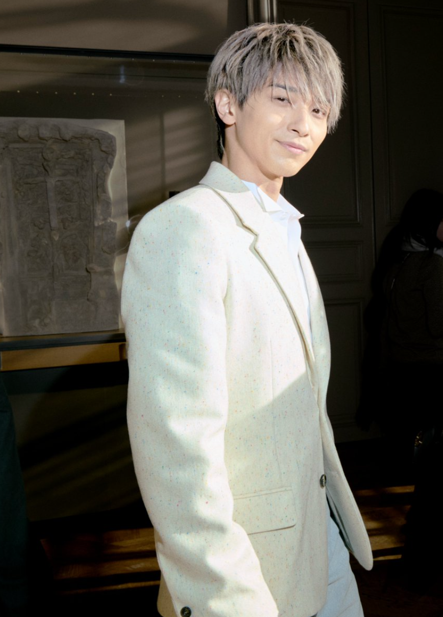 另一方面,于2020年2月起担任迪奥日本形象大使的横滨流星,则以米白色夹克、白色棉质衬衫搭配蓝色牛仔裤的造型现身。而且他一改往日形象,以银灰色发型亮相,引发热议。