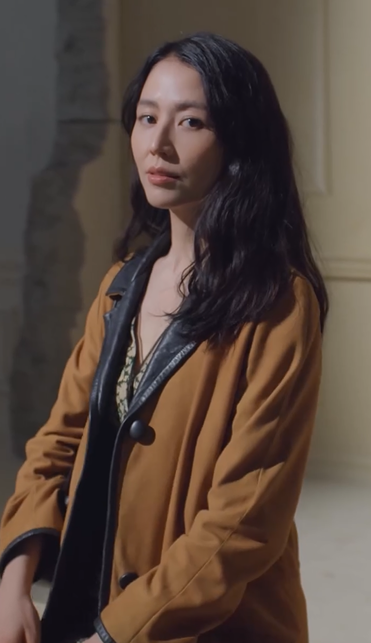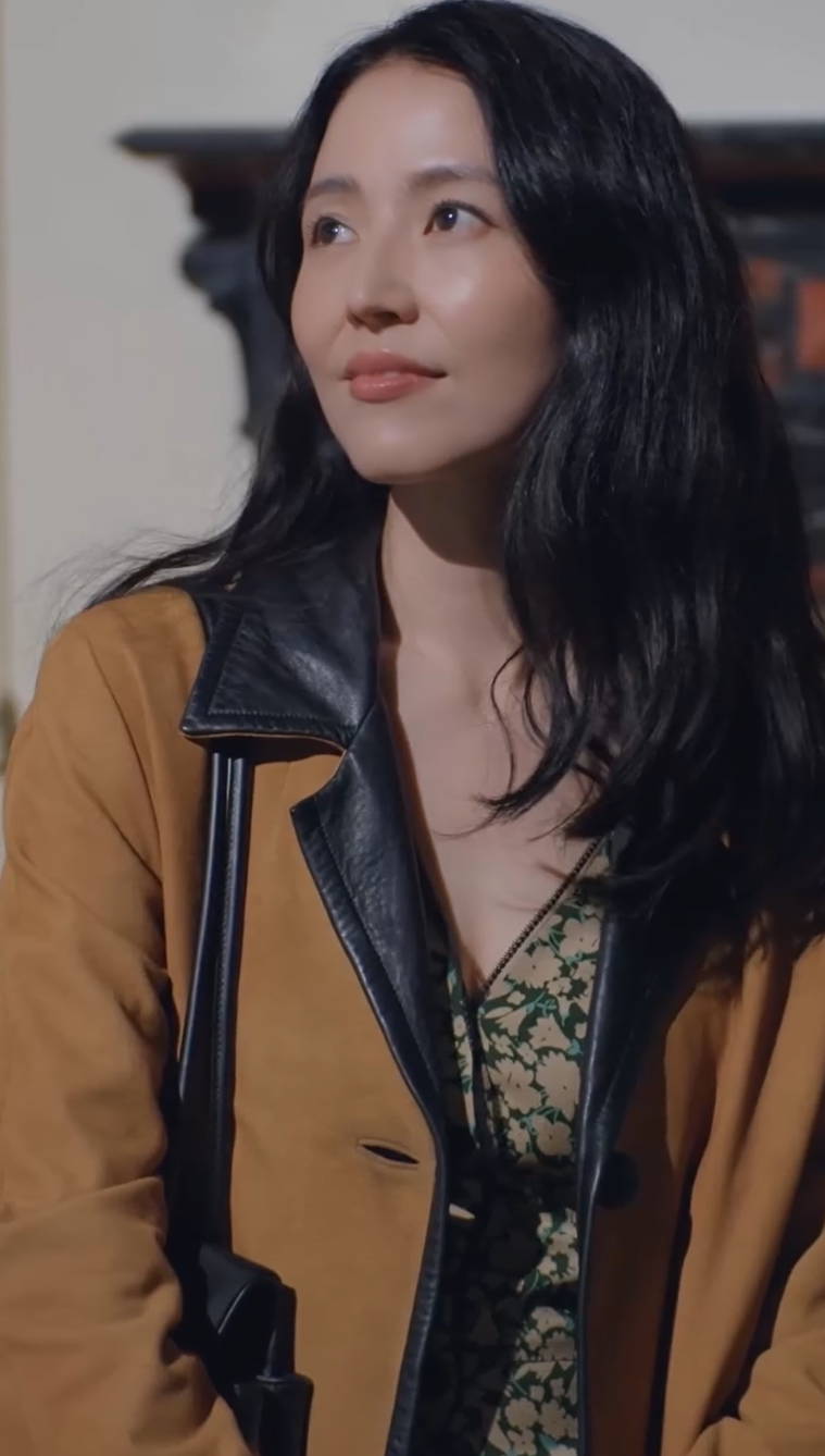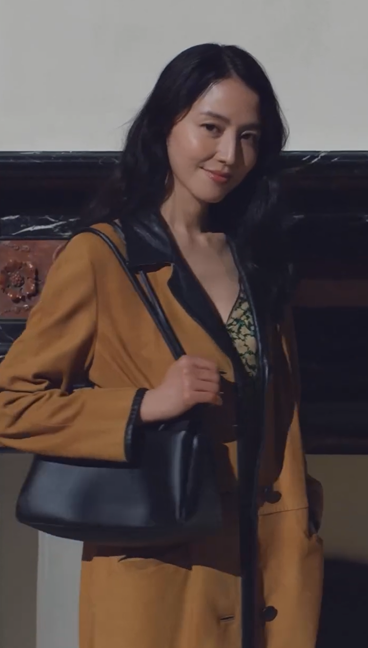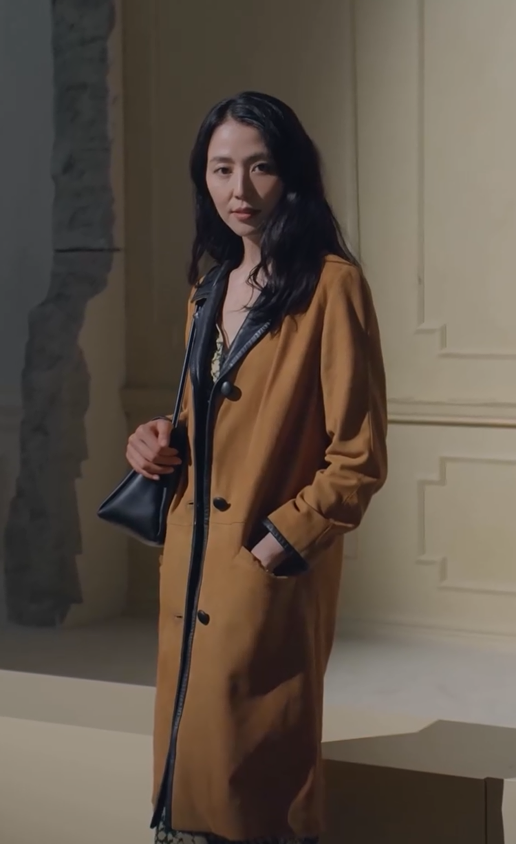 長澤さんは、コンサバティブなスタイリングでゆったりと歩きながらカメラ前に登場した。深いVネックの花柄があしらわれたブラック基調のワンピースを着用し、キャメル色のロングコートを羽織った、エレガントな雰囲気漂う装いを披露しました。