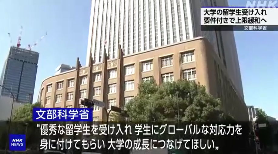 文部科学省は、大学が留学生を受け入れる場合に定員の超過上限を緩和する方針を固めた。海外主要国に比べて低い学部留学生の比率を高め、日本の成長や教育研究の質向上につなげる狙いがある。2026年度からの実施を目指す。