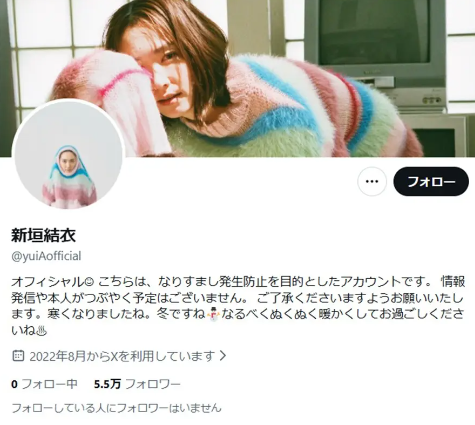 「2022年8月、なりすまし防止目的で、新垣さんはXアカウントを開設しました。開設当初、モノクロの写真を投稿して以降、ポストは更新していませんでした。アカウントのプロフィール欄には、《こちらは、なりすまし発生防止を目的としたアカウントです。情報発信や本人がつぶやく予定はございません。ご了承くださいますようお願いいたします》と記されていました。それが、12月に入って《寒くなりましたね。冬ですね なるべくぬくぬく暖かくしてお過ごしくださいね》と、雪だるまの絵文字を使ったメッセージが書き込まれたのです」(芸能担当記者)