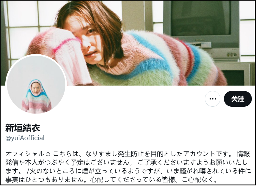 “2024年5月,一位在社媒上影响力颇高的爆料类网红发文,称星野源出轨的恶意谣言遭到扩散,导致星野本人和所属事务所不得不正面否认。届时新垣就曾在X的简介栏中写道:‘似乎没有风的地方起了浪,目前的传闻没有一件是事实。各位无须担心’安抚了粉丝的情绪。虽然她很少更新,但X的确也成了她在必要时展现对粉丝关怀的重要工具。”(上文娱乐记者)