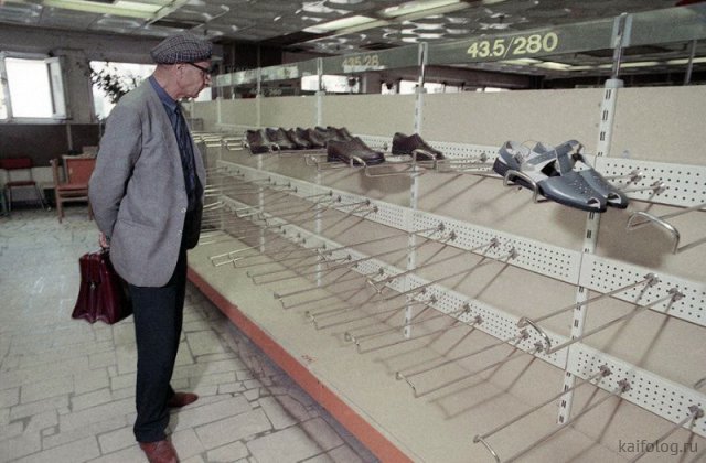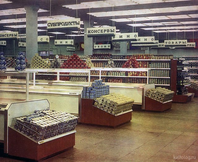 图片里苏联时期的超市还是以罐头为主,新鲜的食品比较少。