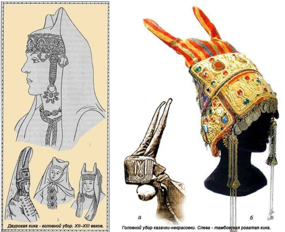 кика 双角帽(古俄罗斯的一种有两个角,可以遮发的)妇女头饰
