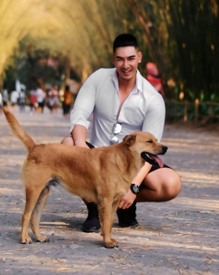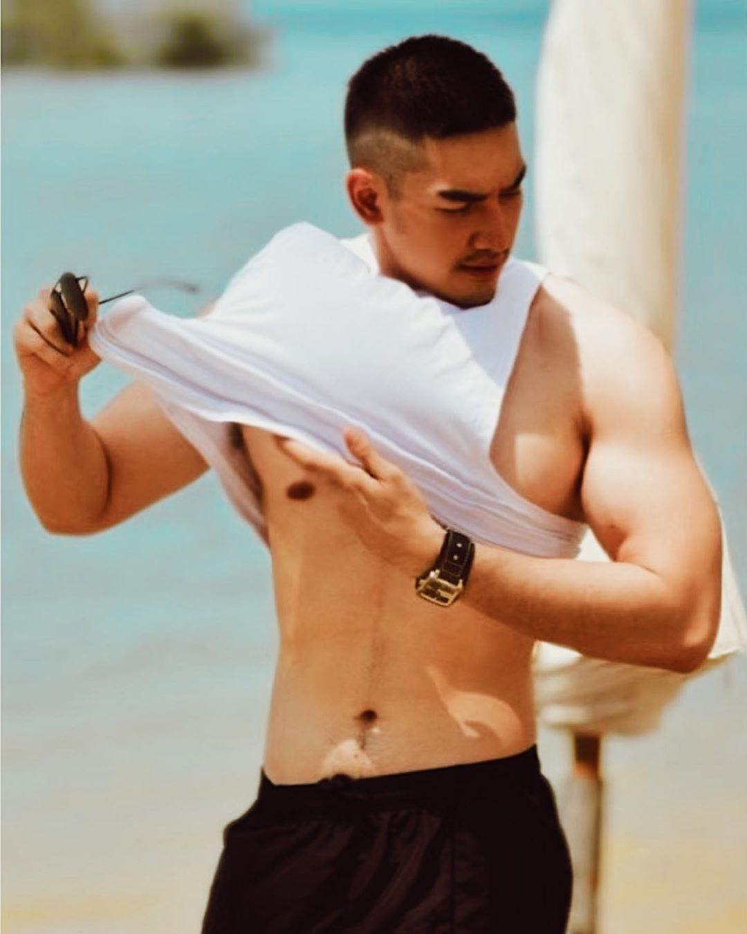 锻炼后Singto the Star也秀了一把自己强健的身躯,但马上就被打趣了因为有其他的东西抢了镜。