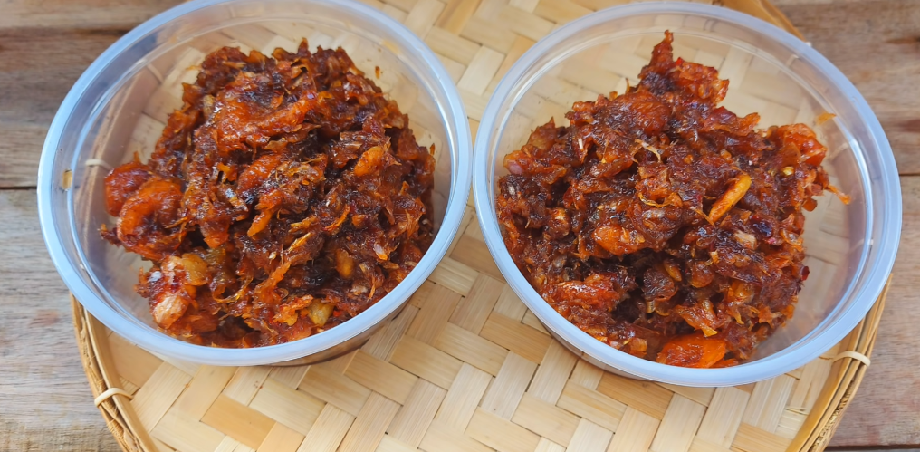 1. นำกุ้งเสียบ กุ้งแห้ง ทอดให้เหลือง (พักไว้ให้เย็น) แล้วนำกุ้งแห้งเนื้อไปปั่นให้ละเอียด