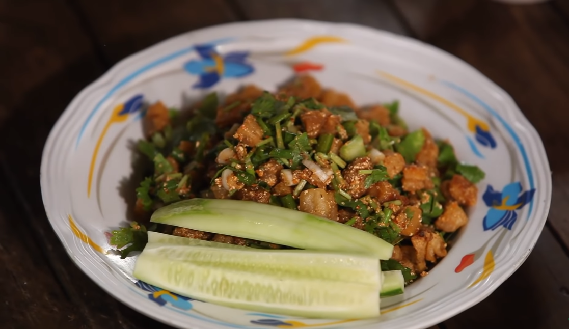 1. เจียวกากหมูโดยตั้งกระทะไฟกลางใส่มันหมู น้ำเปล่าและเกลือลงไป เจียวจนน้ำระเหยหมดแล้วเจียวต่อจนน้ำมันหมูออกมา และเจียวจนมันหมูกรอบ ตักขึ้นสะเด็ดน้ำมัน