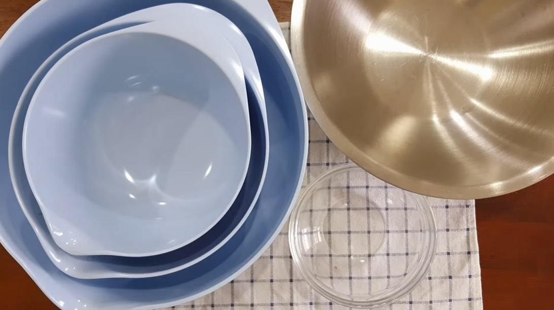 ชามผสมสำคัญมากในการทำขนม เพราะต้องใช้ในการผสมส่วนประกอบต่างๆ ให้เข้ากัน โดยชามผสมจะมีทั้งหมด 2 แบบคือแบบสแตนเลส และแบบแก้ว สามารถทนความร้อนได้ทั้งคู่ แต่แบบแก้วอาจจะดูแลรักษายากกว่า