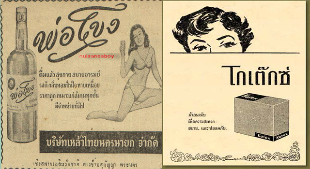 在刚刚出现成型的卫生巾时,它被叫做“ผ้าซับระดู”(直译:吸月经的布),售卖价格是一打3泰铢,最早的证据是在1925年1月14日周四第2期第1年的《Khai Phet》报纸上登印了卫生巾广告,广告来自Phra Nahorn区Ban Mo街Prasoet Orot商场,内容是: