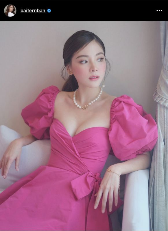 และเราจะปิดท้ายกันที่แฟชั่นชุดสีชมพูของสาว “ใบเฟิร์น” กับชุดนี้ที่เห็นแล้วโดดเด่นไปทั้งชุดเลยจริงๆ ไม่เพียงแค่นั้นยังเพิ่มความเก๋ไก๋ด้วยสร้อยคอมุกเข้าไป ส่วนข้อมือเพิ่มความแพงเข้าไปด้วยสร้อยนั่นเอง