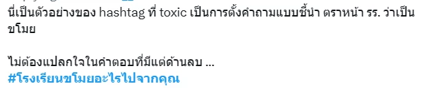 นอกจากนี้ ยังมีผู้ที่ออกมาแสดงความคิดเห็นในอีกมุมหนึ่ง ว่า "นี่เป็นตัวอย่างของ hashtag ที่ toxic เป็นการตั้งคำถามแบบชี้นำ ตราหน้า รร. ว่าเป็นขโมย ไม่ต้องแปลกใจในคำตอบที่มีแต่ด้านลบ"