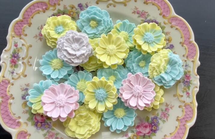 隆都花饼是一种形状像隆都花的泰国点心,三片花瓣被放在了一起,花粉点缀在中间让甜点看起来很漂亮,而且也有非常美丽的色彩。隆都花饼因为用香烛熏过所以有独特的香味,甜中带一点微咸,质地轻盈易碎,入口即化。食用时要和茶相配。