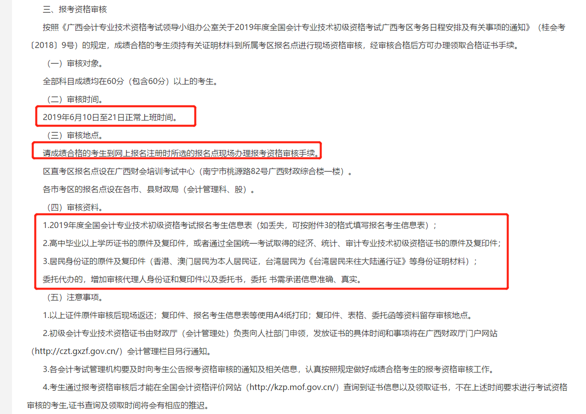 广西2019年度全国会计专业技术初级资格考试考后资格复核的通知