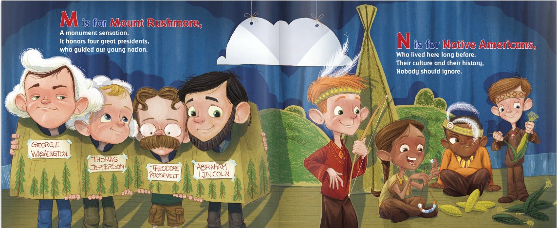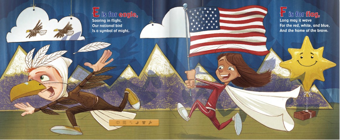 最后分享一本字母绘本,这本绘本呢,把字母和美国的历史文化串联在了一起~