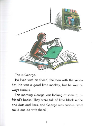 在这部绘本中,主角 Curious George 意思是“好奇的乔治”,乔治是一只猴子,一只在美国家喻户晓的猴子。